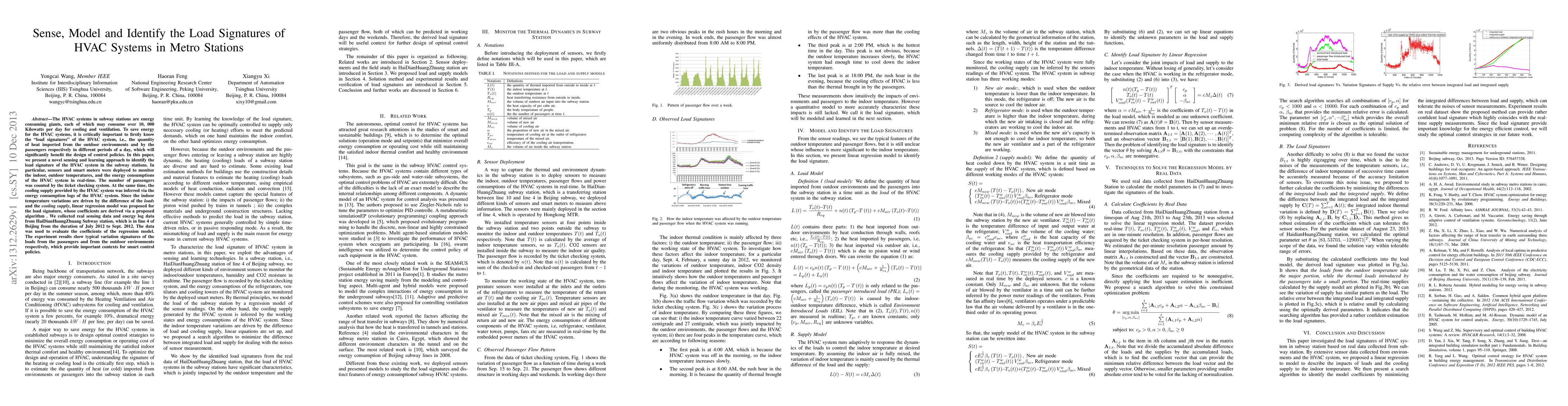 The HVAC systems in subway stations are energy consuming giants, each of which may consume over 10, 000 Kilowatts per day for cooling and ventilation. To save energy for the HVAC systems, it is critically important to firstly know the "load signatures" of the HVAC system, i.e., the quantity of heat imported from the outdoor environments and by the passengers respectively in different periods of a day, which will significantly benefit the design of control policies. In this paper, we present a novel sensing and learning approach to identify the load signature of the HVAC system in the subway stations. In particular, sensors and smart meters were deployed to monitor the indoor, outdoor temperatures, and the energy consumptions of the HVAC system in real-time. The number of passengers was counted by the ticket checking system. At the same time, the cooling supply provided by the HVAC system was inferred via the energy consumption logs of the HVAC system. Since the indoor temperature variations are driven by the difference of the loads and the cooling supply, linear regression model was proposed for the load signature, whose coefficients are derived via a proposed algorithm . We collected real sensing data and energy log data from HaiDianHuangZhuang Subway station, which is in line 4 of Beijing from the duration of July 2012 to Sept. 2012. The data was used to evaluate the coefficients of the regression model. The experiment results show typical variation signatures of the loads from the passengers and from the outdoor environments respectively, which provide important contexts for smart control policies.