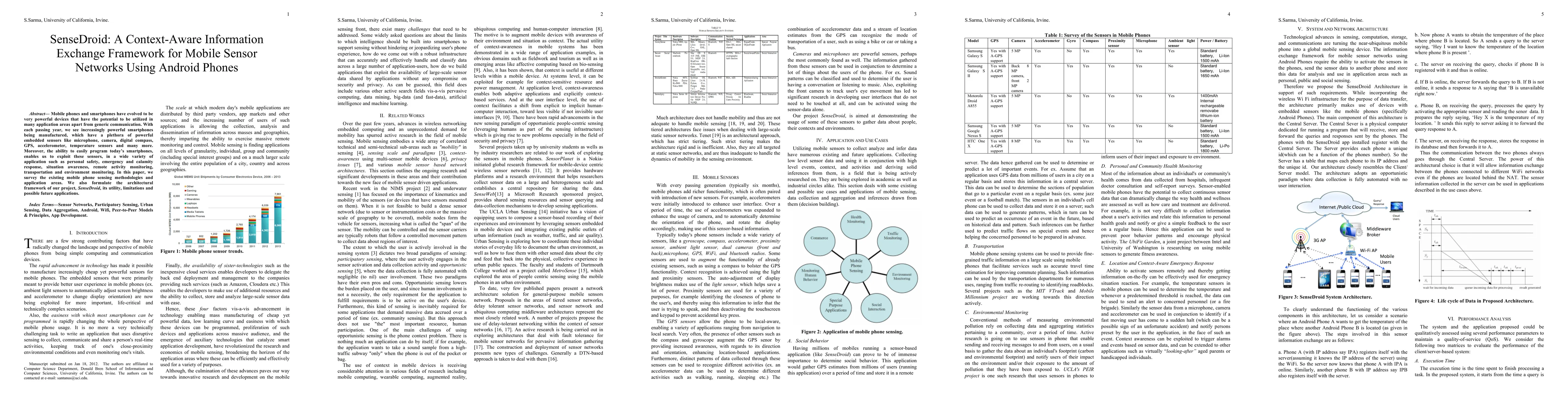 This paper introduces SenseDroid, a framework for harnessing the power of smartphones' embedded sensors to create context-aware applications. It explores existing mobile sensing methodologies and outlines potential future applications in areas like personal safety, emergency response, and environment monitoring.