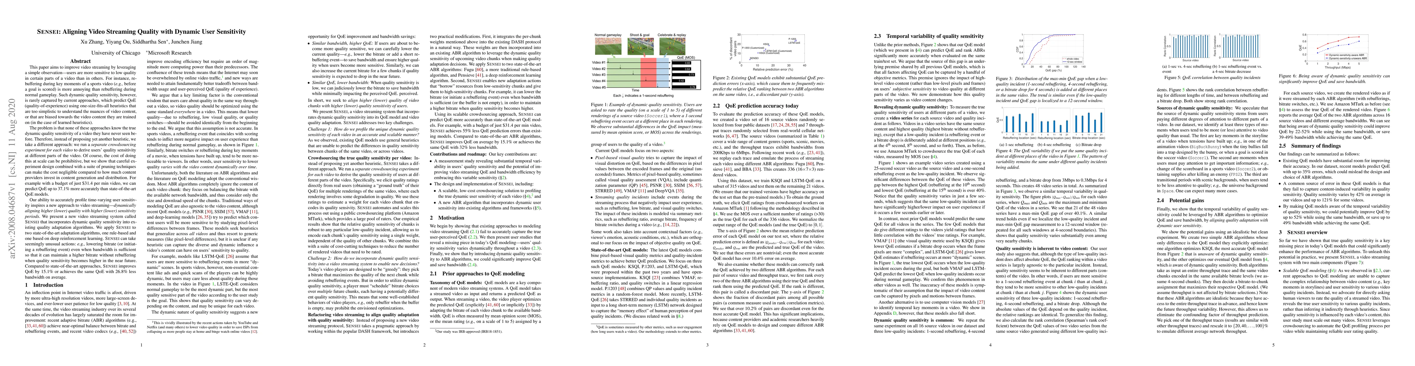 This paper introduces SENSEI, a video streaming system that dynamically adjusts streaming quality based on users' varying sensitivity to quality degradation across different video segments. By leveraging crowdsourcing experiments to profile user sensitivity, SENSEI optimizes quality adaptation, achieving a 15.1% improvement in quality-of-experience or reducing bandwidth usage by 26.8% compared to existing methods.