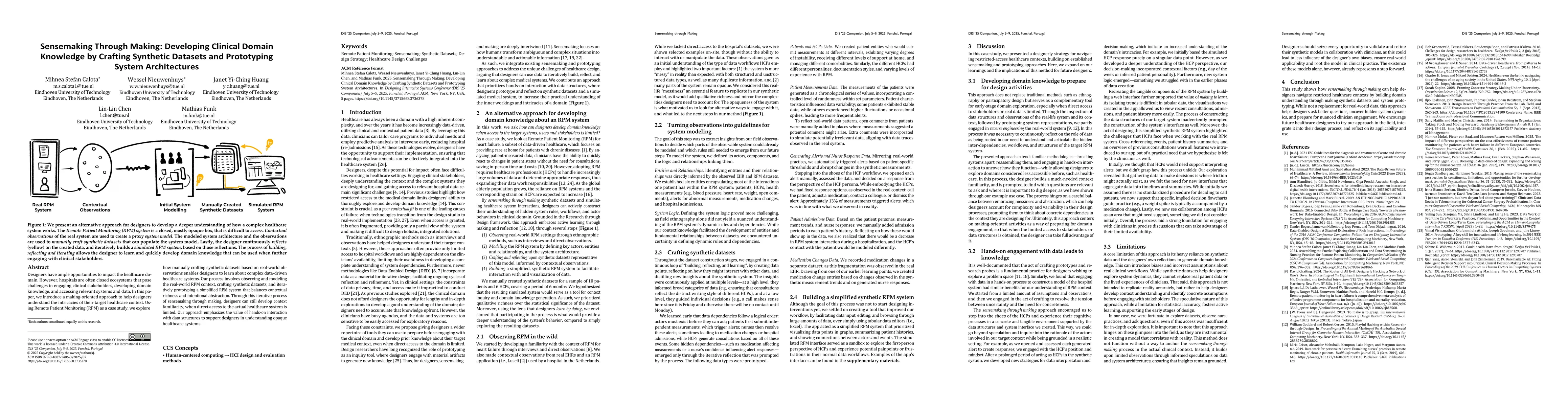 Designers have ample opportunities to impact the healthcare domain. However, hospitals are often closed ecosystems that pose challenges in engaging clinical stakeholders, developing domain knowledge, and accessing relevant systems and data. In this paper, we introduce a making-oriented approach to help designers understand the intricacies of their target healthcare context. Using Remote Patient Monitoring (RPM) as a case study, we explore how manually crafting synthetic datasets based on real-world observations enables designers to learn about complex data-driven healthcare systems. Our process involves observing and modeling the real-world RPM context, crafting synthetic datasets, and iteratively prototyping a simplified RPM system that balances contextual richness and intentional abstraction. Through this iterative process of sensemaking through making, designers can still develop context familiarity when direct access to the actual healthcare system is limited. Our approach emphasizes the value of hands-on interaction with data structures to support designers in understanding opaque healthcare systems.