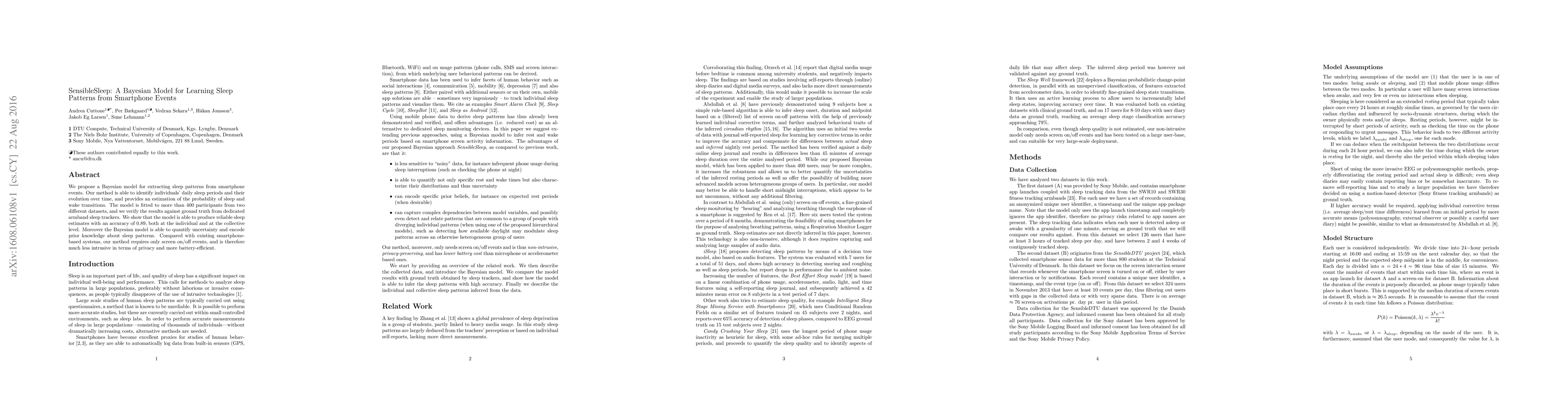 A Bayesian model accurately estimates sleep patterns from smartphone events with 89% accuracy, providing insights into individual and collective sleep habits.