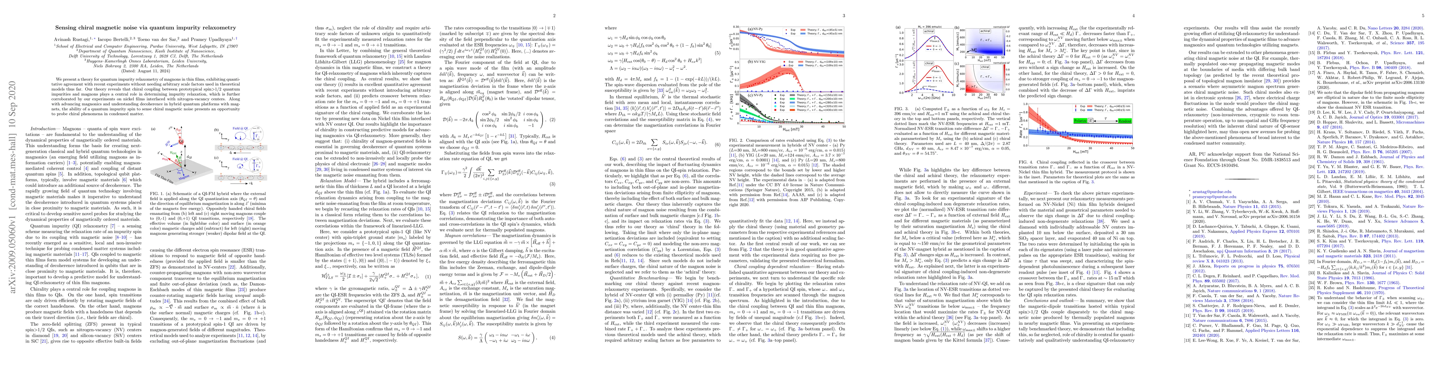 We present a theory for quantum impurity relaxometry of magnons in thin films, exhibiting quantitative agreement with recent experiments without needing arbitrary scale factors used in theoretical models thus far. Our theory reveals that chiral coupling between prototypical spin>1/2 quantum impurities and magnons plays a central role in determining impurity relaxation, which is further corroborated by our experiments on nickel films interfaced with nitrogen-vacancy centers. Along with advancing magnonics and understanding decoherence in hybrid quantum platforms with magnets, the ability of a quantum impurity spin to sense chiral magnetic noise presents an opportunity to probe chiral phenomena in condensed matter.