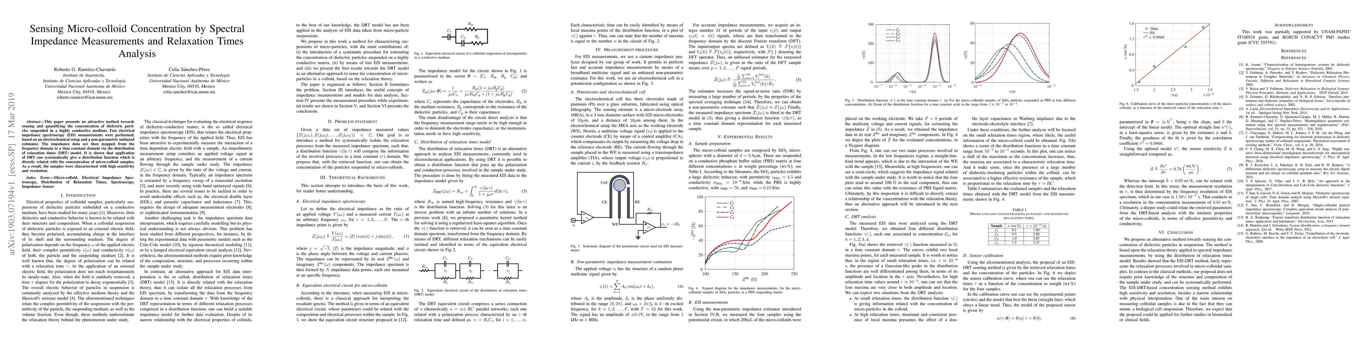 This paper introduces a method for sensing and quantifying micro-colloid concentration using fast electrical impedance spectroscopy and the distribution of relaxation times model, achieving high sensitivity and resolution. The technique maps impedance data from frequency to time constant domain, correlating the resulting distribution function directly with micro-colloid concentration.