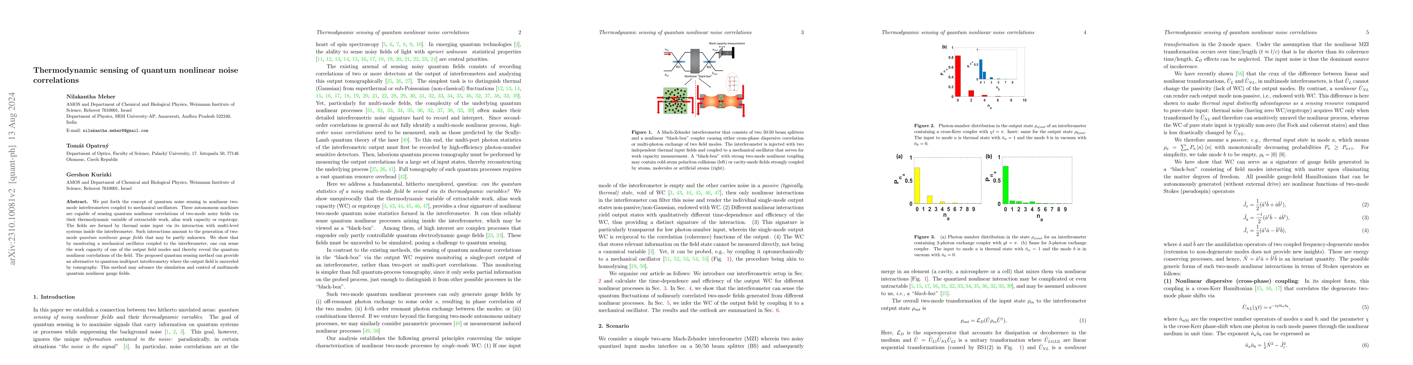 This paper proposes quantum noise sensors using nonlinear two-mode interferometers coupled to mechanical oscillators to detect quantum nonlinear correlations via thermodynamic variables. These sensors convert thermal noise into quantum correlated output, revealing the work capacity and thus the quantum correlations of the interferometer's output modes.