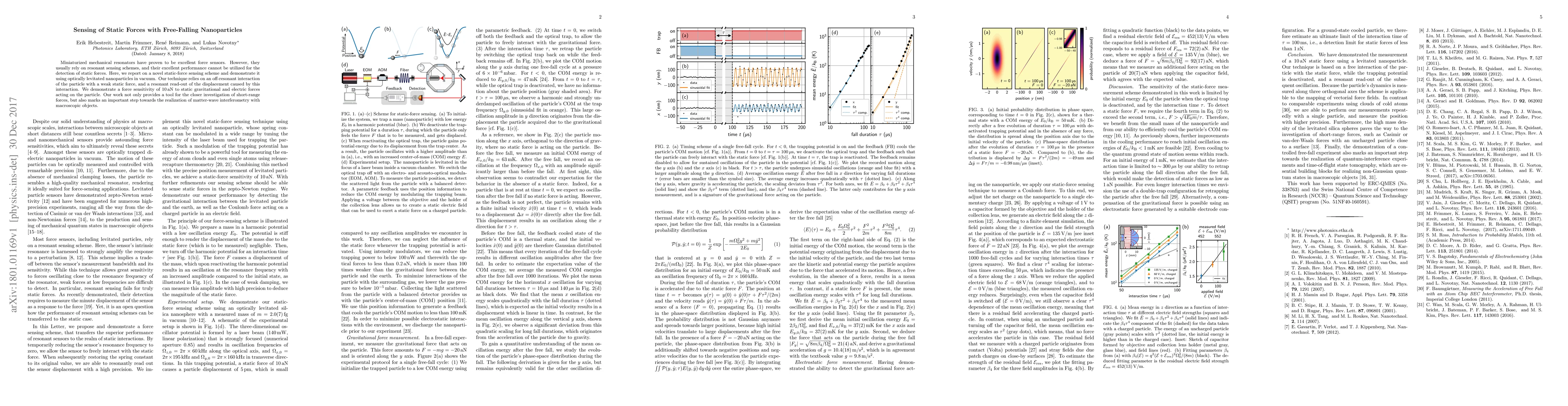 Miniaturized mechanical resonators have proven to be excellent force sensors. However, they usually rely on resonant sensing schemes, and their excellent performance cannot be utilized for the detection of static forces. Here, we report on a novel static-force sensing scheme and demonstrate it using optically levitated nanoparticles in vacuum. Our technique relies on an off-resonant interaction of the particle with a weak static force, and a resonant read-out of the displacement caused by this interaction. We demonstrate a force sensitivity of $10\,\mathrm{aN}$ to static gravitational and electric forces acting on the particle. Our work not only provides a tool for the closer investigation of short-range forces, but also marks an important step towards the realization of matter-wave interferometry with macroscopic objects.
