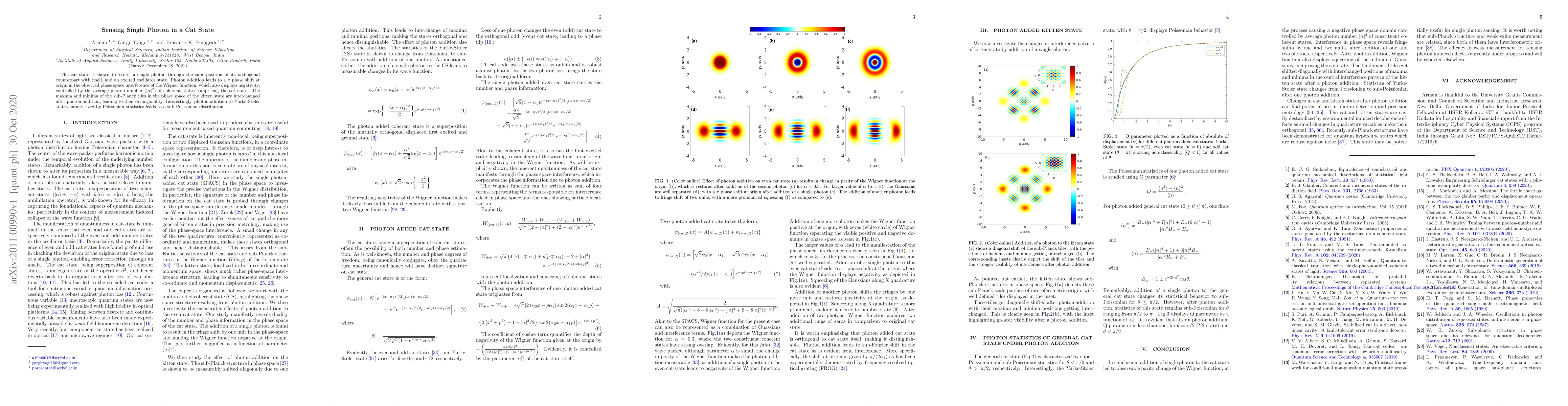 The cat state is shown to `store' a single photon through the superposition of its orthogonal counterpart with itself, and an excited oscillator state. Photon addition leads to a $\pi $ phase shift at origin in the observed phase space interference of the Wigner function, which also displays negativity, controlled by the average photon number ($|\alpha|^2$) of coherent states comprising the cat state. The maxima and minima of the sub-Planck tiles in the phase space of the kitten state are interchanged after photon addition, leading to their orthogonality. Interestingly, photon addition to Yurke-Stoler state characterized by Poissonian statistics leads to a sub-Poissonian distribution.
