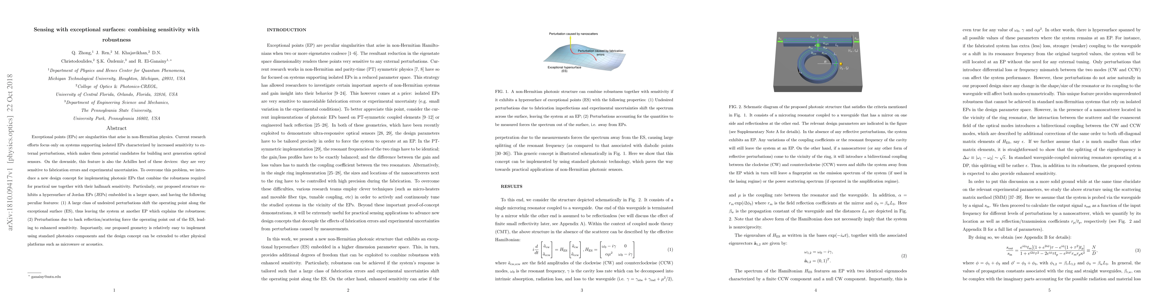 Exceptional points (EPs) are singularities that arise in non-Hermitian physics. Current research efforts focus only on systems supporting isolated EPs characterized by increased sensitivity to external perturbations, which makes them potential candidates for building next generation optical sensors. On the downside, this feature is also the Achilles heel of these devices: they are very sensitive to fabrication errors and experimental uncertainties. To overcome this problem, we introduce a new design concept for implementing photonic EPs that combine the robustness required for practical use together with their hallmark sensitivity. Particularly, our proposed structure exhibits a hypersurface of Jordan EPs (JEPs) embedded in a larger space, and having the following peculiar features: (1) A large class of undesired perturbations shift the operating point along the exceptional surface (ES), thus leaving the system at another EP which explains the robustness; (2) Perturbations due to back reflection/scattering force the operating point out of the ES, leading to enhanced sensitivity. Importantly, our proposed geometry is relatively easy to implement using standard photonics components and the design concept can be extended to other physical platforms such as microwave or acoustics.