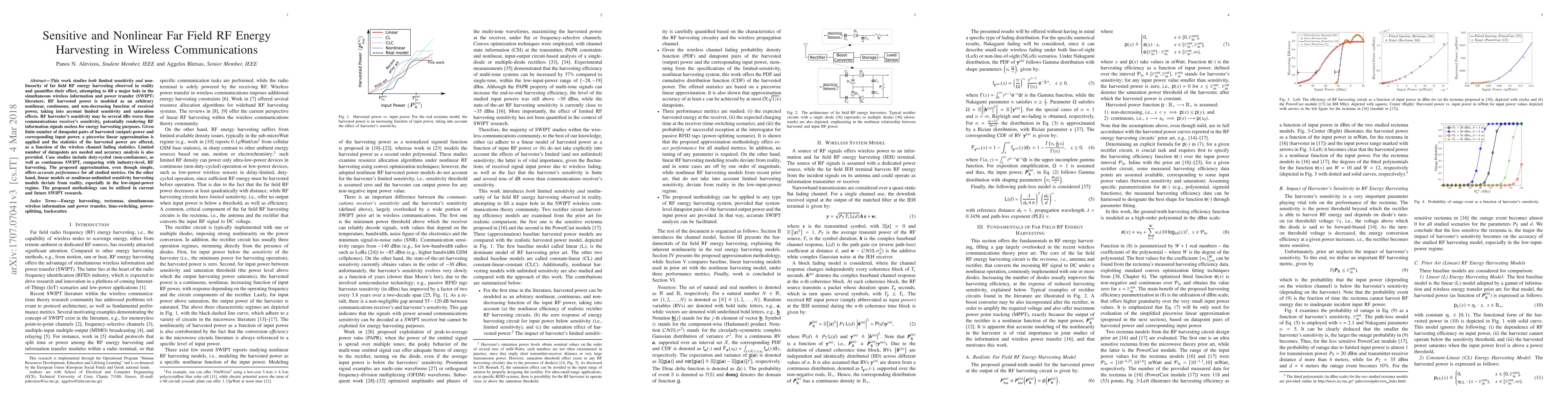 This paper investigates the limited sensitivity and nonlinearity in far field RF energy harvesting, modeling RF power as a nonlinear function of received power. It proposes a piecewise linear approximation for accurate harvested power statistics, demonstrating its effectiveness in various SWIPT scenarios compared to industry-level RF harvesting.
