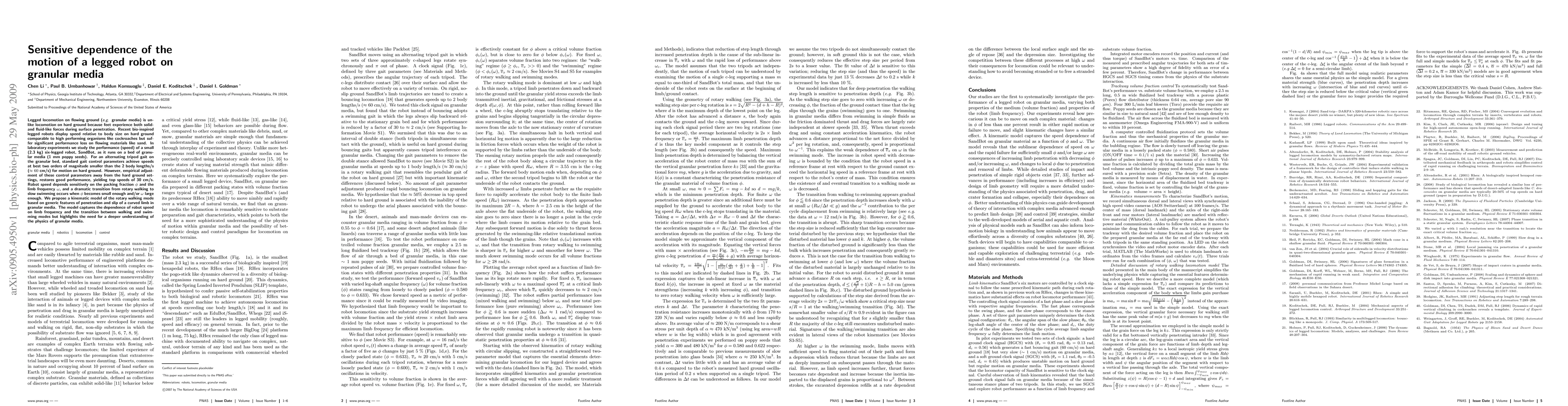 This paper investigates the locomotion of a six-legged robot, SandBot, on granular media, finding significant performance loss compared to hard ground. Adjusting control parameters from hard ground settings restores good performance, highlighting the sensitive dependence on packing fraction and limb frequency, with a transition from rotary walking to slow swimming under certain conditions.
