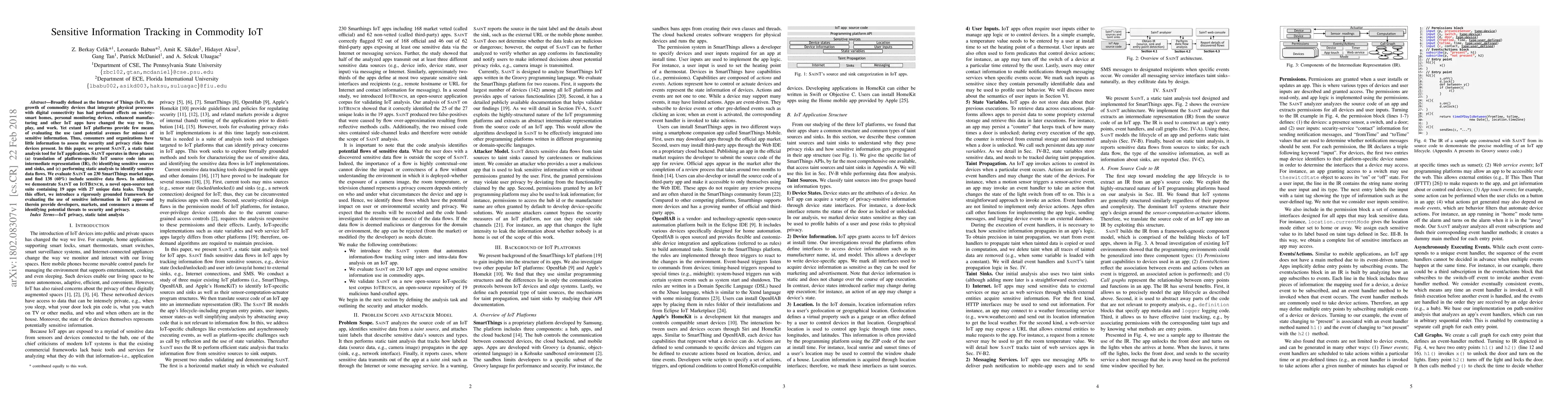 This paper introduces SainT, a static taint analysis tool for assessing sensitive information flows in IoT applications, revealing that 60% of evaluated SmartThings apps contain such flows. The tool aims to help developers and consumers identify security and privacy risks in IoT devices.