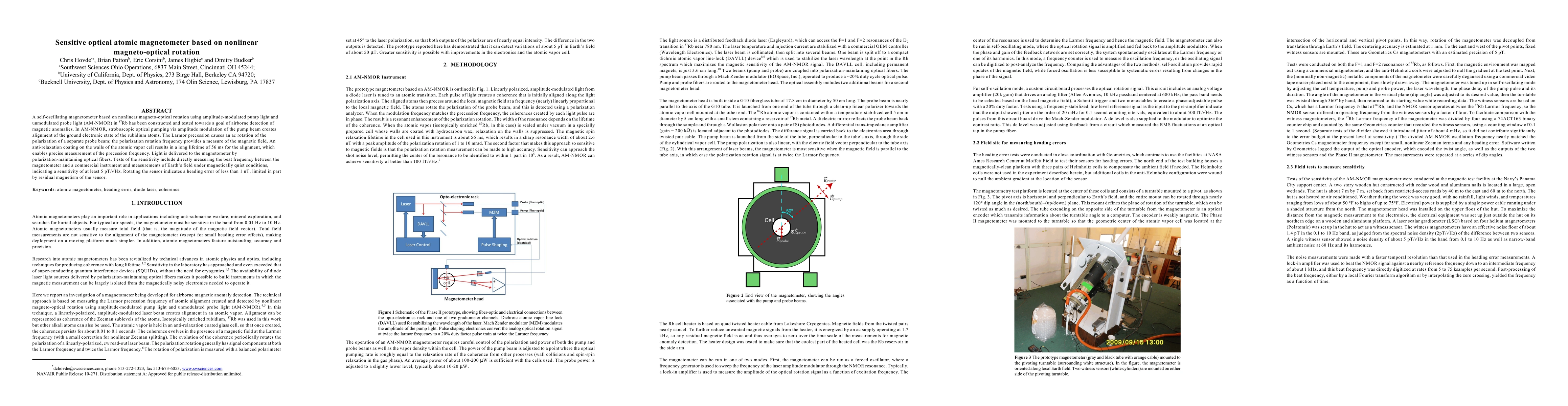 The development of a compact DAVLL cell for stabilizing the wavelength of the laser and the use of nonlinear magneto-optical rotation for high-sensitivity magnetic field measurements.