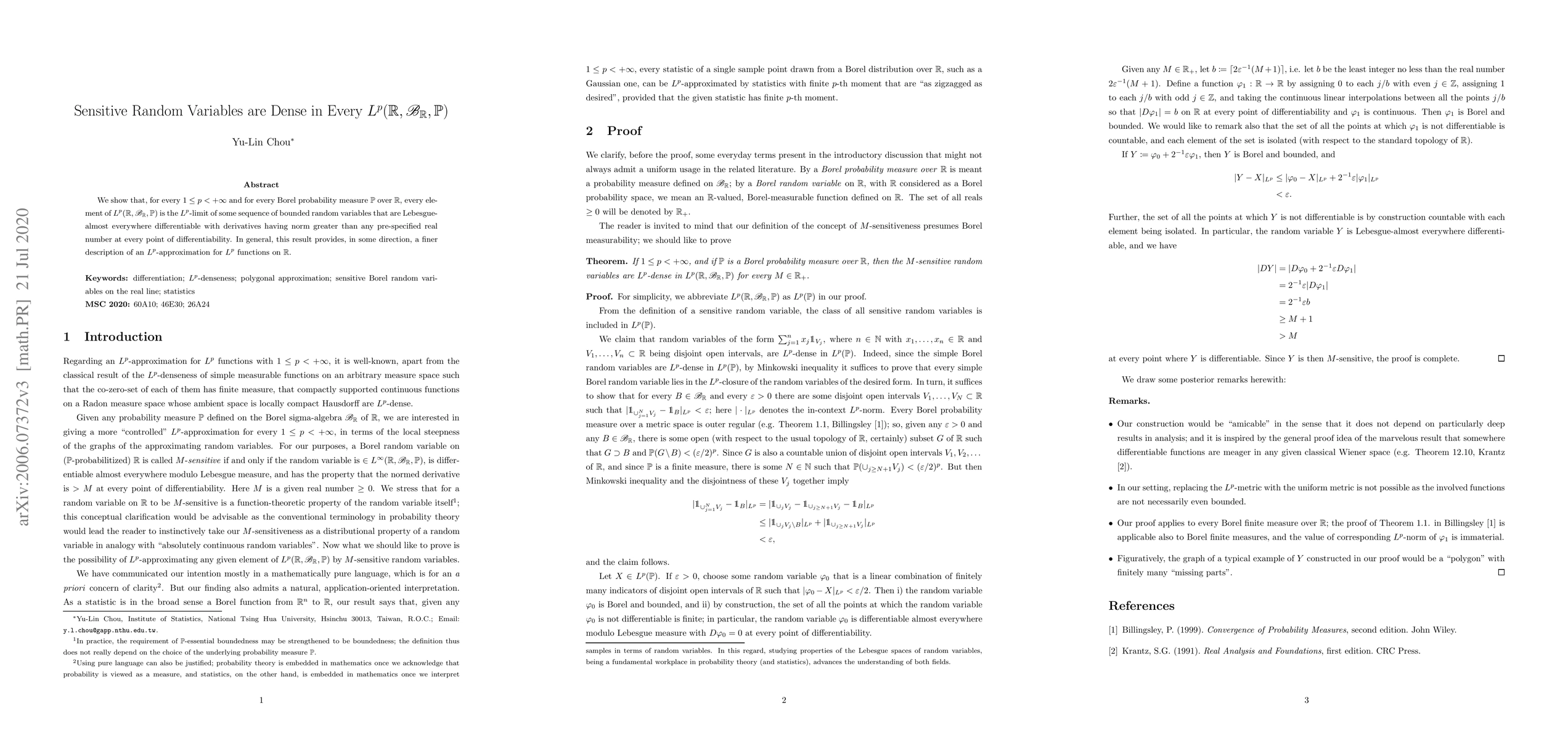 This paper demonstrates that sensitive random variables, which are almost everywhere differentiable with large derivative norms, are dense in every $L^{p}$ space for $1 \leq p < +\infty$ under any Borel probability measure on $\mathbb{R}$. This result refines the understanding of $L^{p}$-approximations for functions on $\mathbb{R}$.