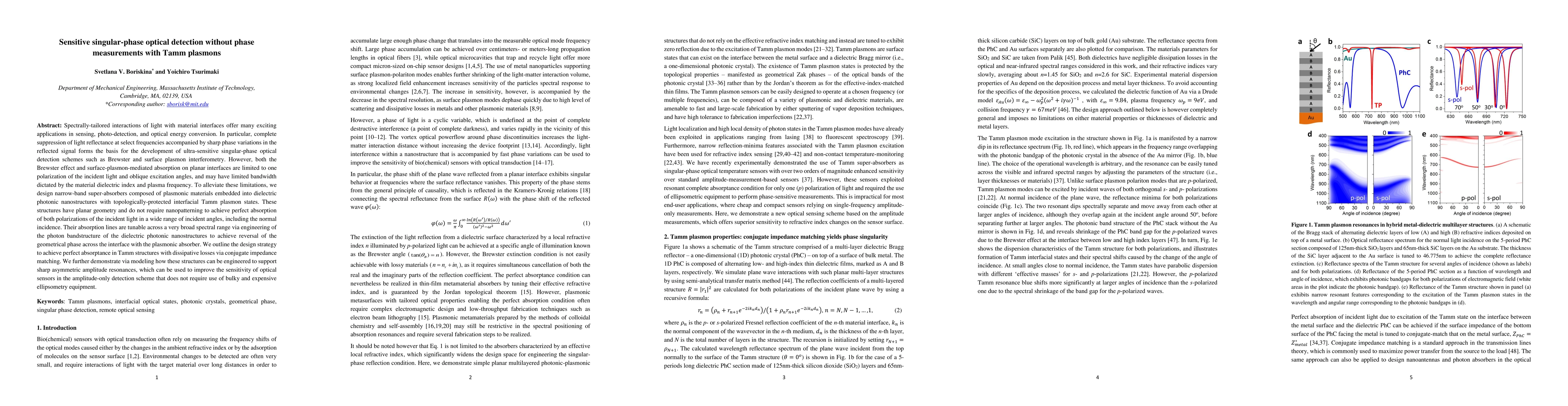 Researchers created ultra-sensitive optical detection schemes using Tamm plasmons to detect light at specific frequencies without needing phase measurements. These designs overcome limitations of existing methods and offer potential for improved sensitivity in sensing applications.
