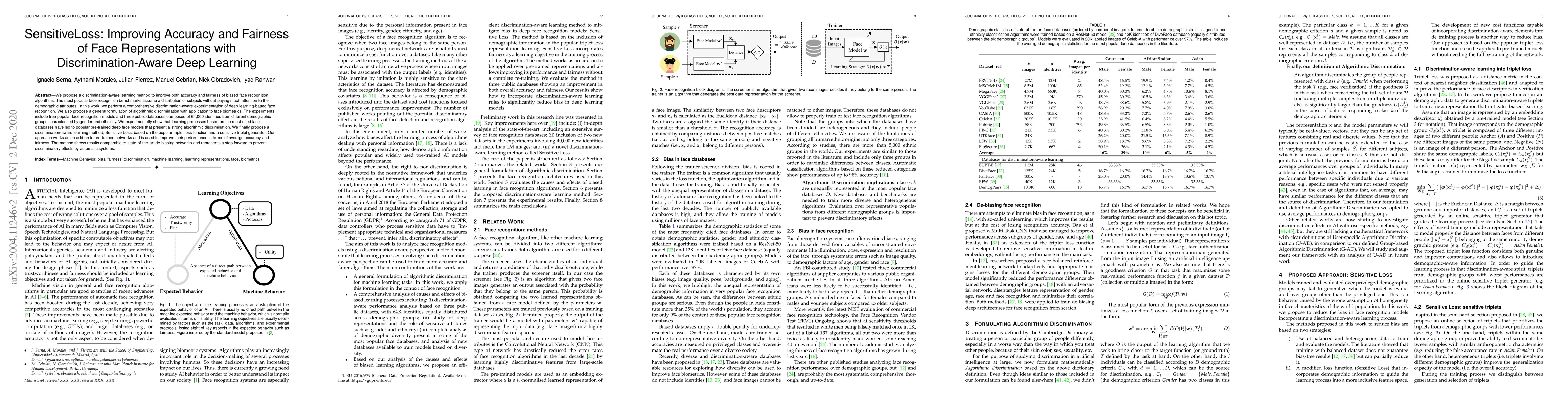 The paper proposes Sensitive Loss, a discrimination-aware learning method to enhance both the accuracy and fairness of face recognition algorithms, addressing the bias in popular face databases and pre-trained models. The method, based on the triplet loss function, improves performance without compromising accuracy.