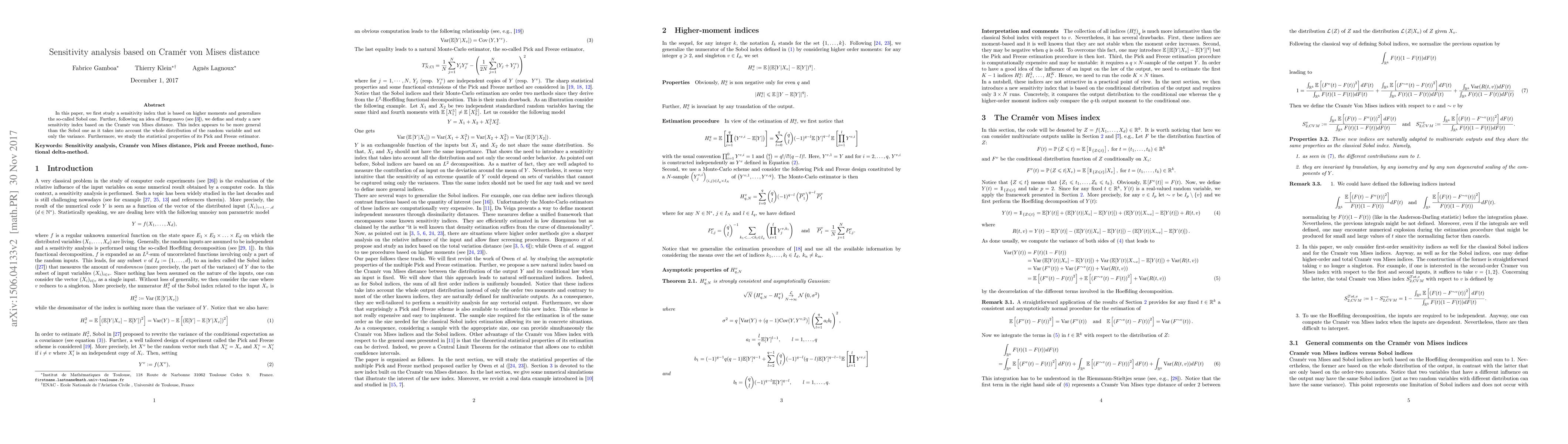 This paper introduces a new sensitivity index based on the Cramér von Mises distance, which generalizes the Sobol index by considering the entire distribution of a random variable, not just its variance. The paper also examines the statistical properties of a Monte Carlo estimate of this new index.