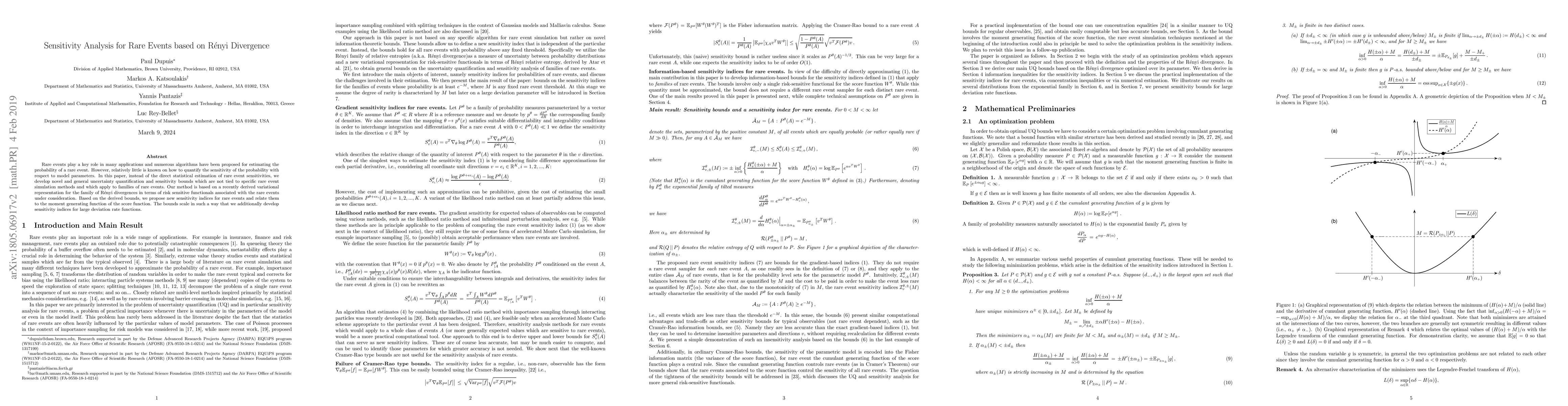 The paper introduces a framework for uncertainty quantification and sensitivity analysis of rare events using Rényi divergence, providing general bounds and new sensitivity indices.