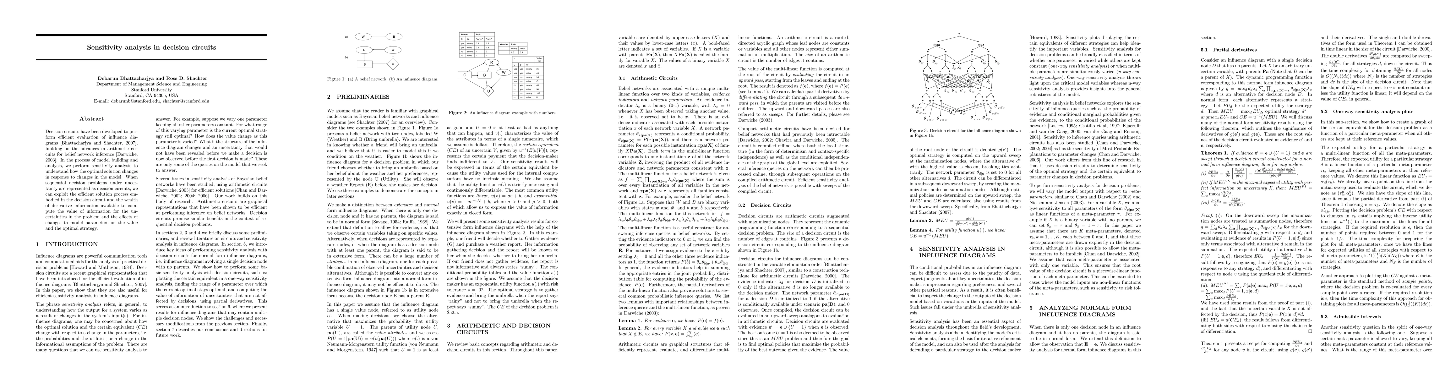 This paper explores sensitivity analysis in decision circuits used for evaluating influence diagrams, leveraging efficient solution processes and derivative information to understand how changes in model parameters affect optimal solutions and the value of information.