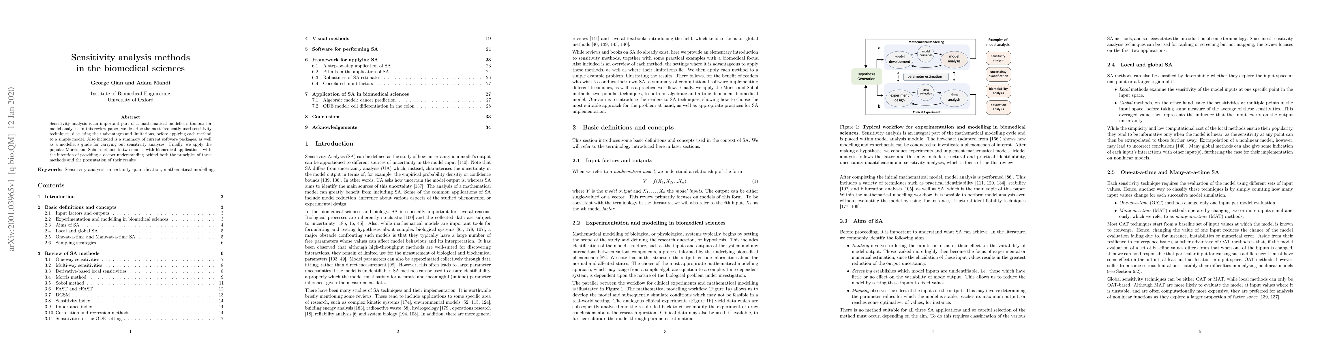 This review paper explores various sensitivity analysis techniques commonly used in biomedical sciences, detailing their benefits and drawbacks, and provides a guide for practitioners. It also applies the Morris and Sobol methods to two biomedical models to illustrate their practical use and result interpretation.