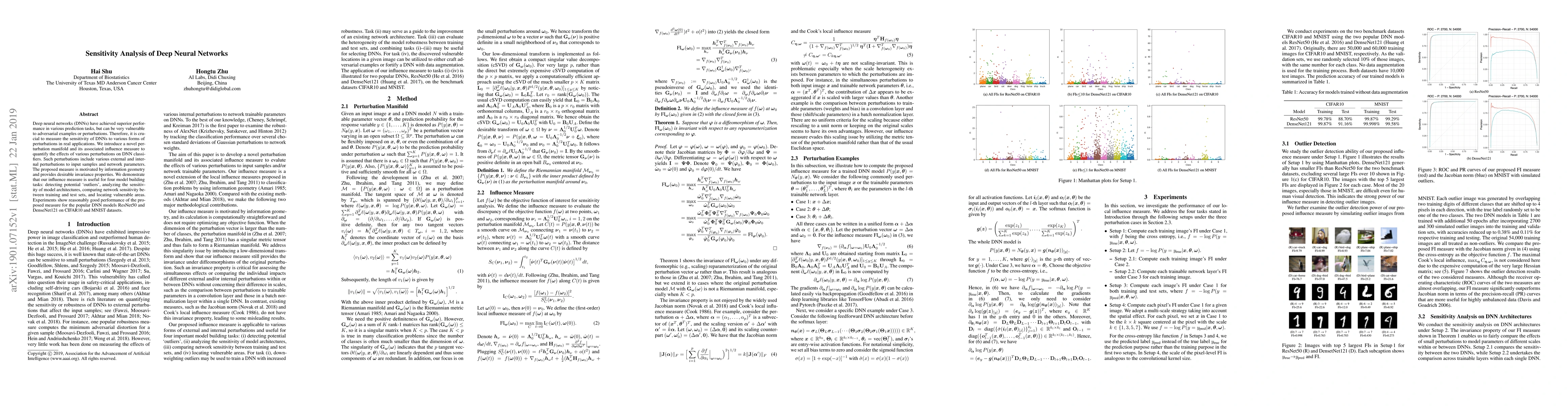 This paper introduces a novel perturbation manifold and influence measure to quantify the sensitivity of deep neural networks to various perturbations, demonstrating its utility in detecting outliers, analyzing model architecture sensitivity, comparing training and test set sensitivities, and identifying vulnerable areas. Experiments on ResNet50 and DenseNet121 show the measure's effectiveness.