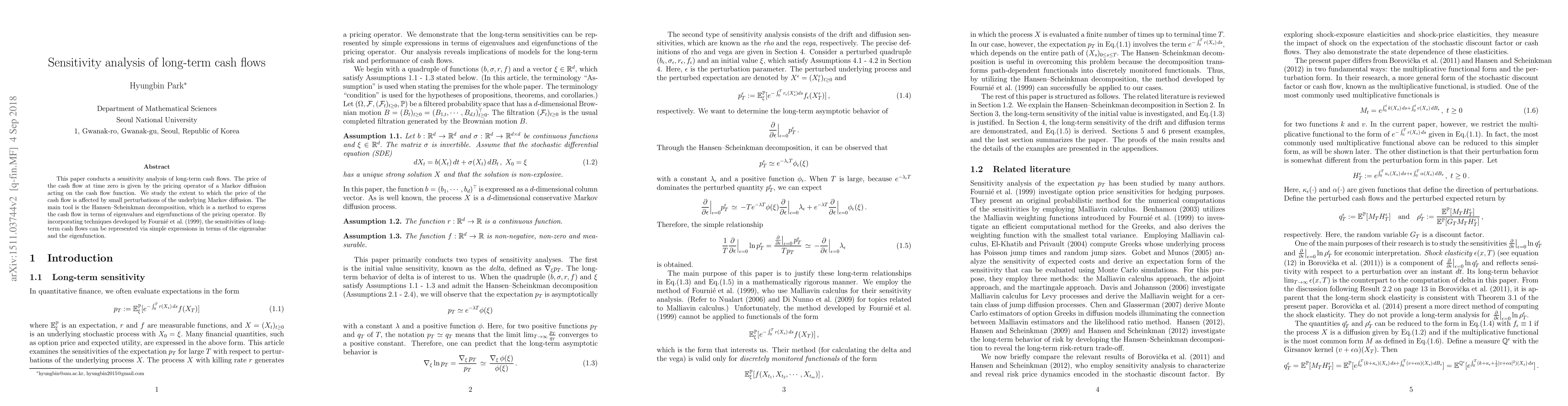 This paper conducts a sensitivity analysis of long-term cash flows by perturbing the underlying process, employing martingale extraction to simplify the pricing operator. The method of Fournie et al. is combined to demonstrate that the sensitivity can be represented in a straightforward form.