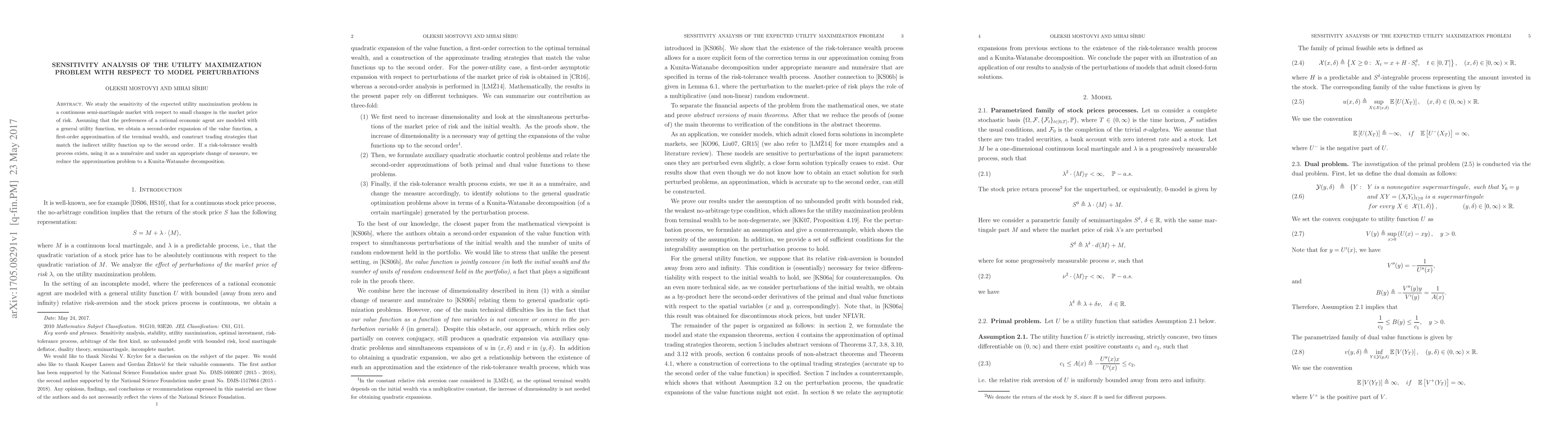 This paper investigates the sensitivity of the utility maximization problem in a continuous semi-martingale market to small changes in the market price of risk. It provides a second-order expansion of the value function and constructs trading strategies that match the indirect utility function up to the second order.
