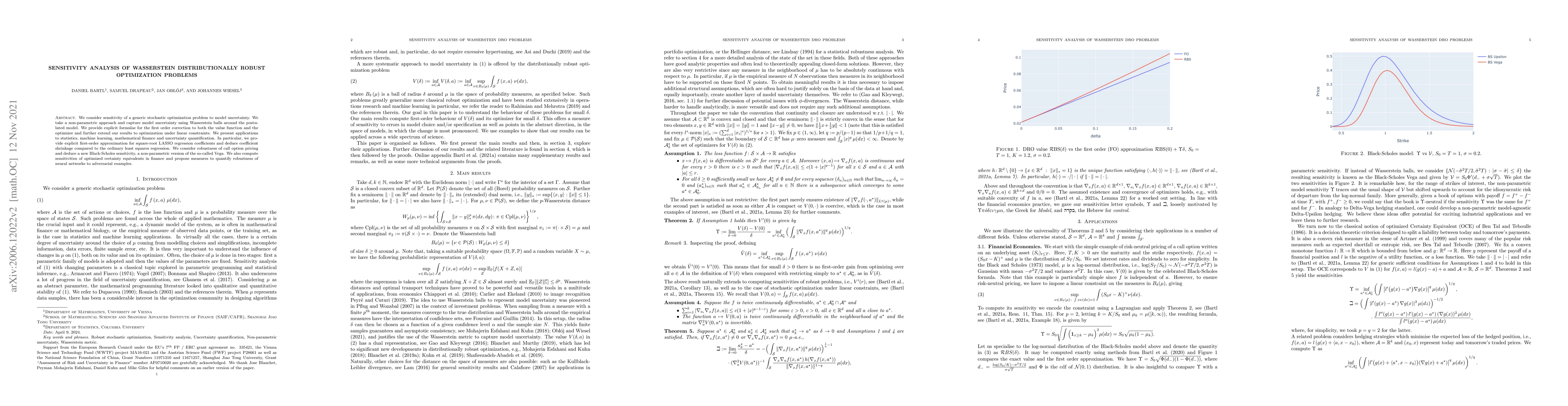 This paper investigates the sensitivity of stochastic optimization problems under model uncertainty using Wasserstein distributionally robust optimization. It provides explicit first-order correction formulae for the value function and optimizer, extending results to constrained optimization and applying them in statistics, machine learning, finance, and uncertainty quantification.