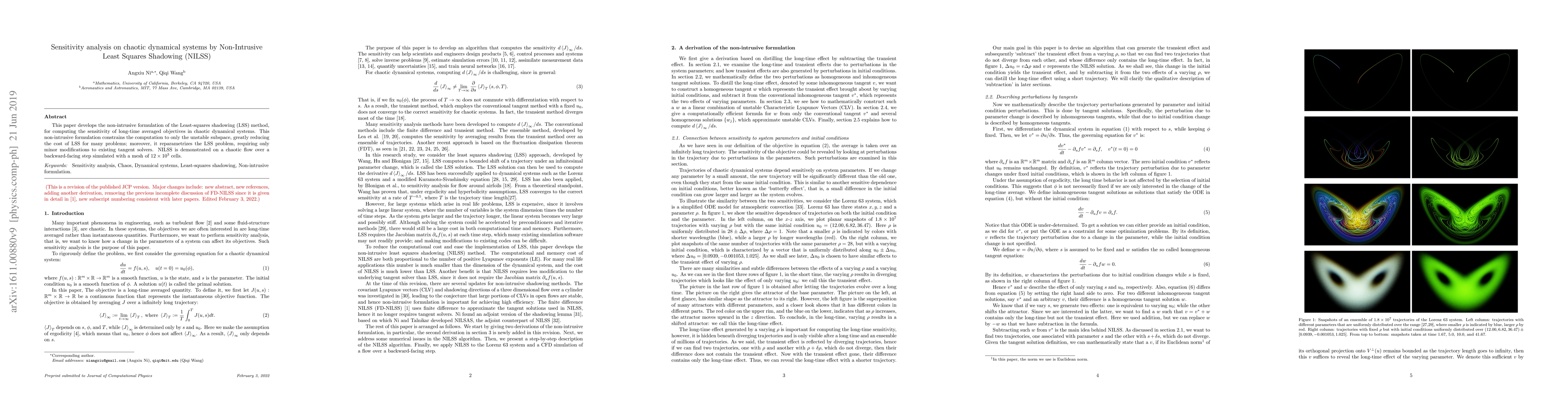 This paper introduces a non-intrusive Least-squares shadowing method (NILSS) for analyzing sensitivity in chaotic dynamical systems, significantly reducing computational costs by focusing only on the unstable subspace. The method is demonstrated on a chaotic flow simulation over a backward-facing step.