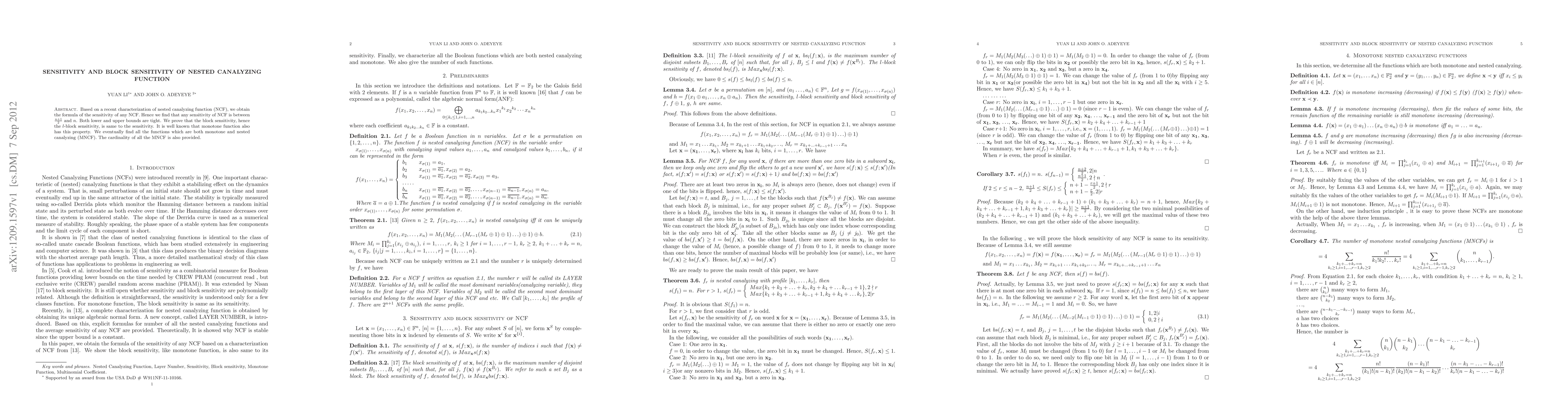 The paper presents a comprehensive analysis of sensitivity and block sensitivity for nested canalyzing functions, proving their equivalence and characterizing monotone nested canalyzing functions.
