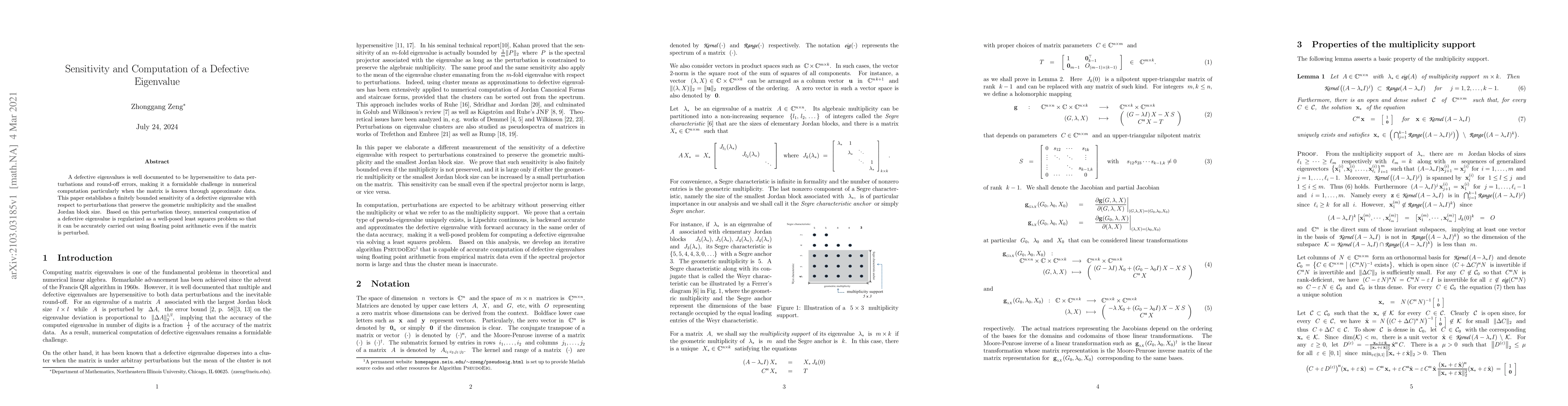 A defective eigenvalue is well documented to be hypersensitive to data perturbations and round-off? errors, making it a formidable challenge in numerical computation particularly when the matrix is known through approximate data. This paper establishes a finitely bounded sensitivity of a defective eigenvalue with respect to perturbations that preserve the geometric multiplicity and the smallest Jordan block size. Based on this perturbation theory, numerical computation of a defective eigenvalue is regularized as a well-posed least squares problem so that it can be accurately carried out using floating point arithmetic even if the matrix is perturbed.