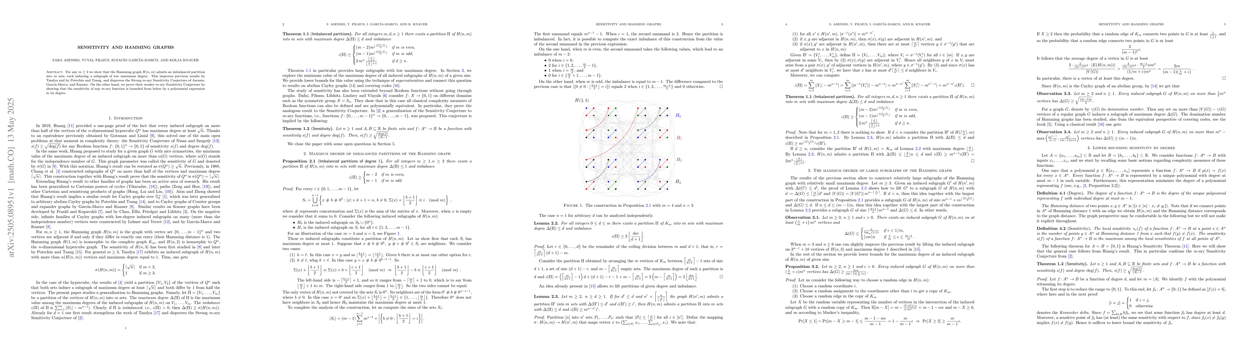 The paper presents novel results on the structural properties of Hamming graphs, specifically regarding imbalanced partitions and sensitivity bounds.