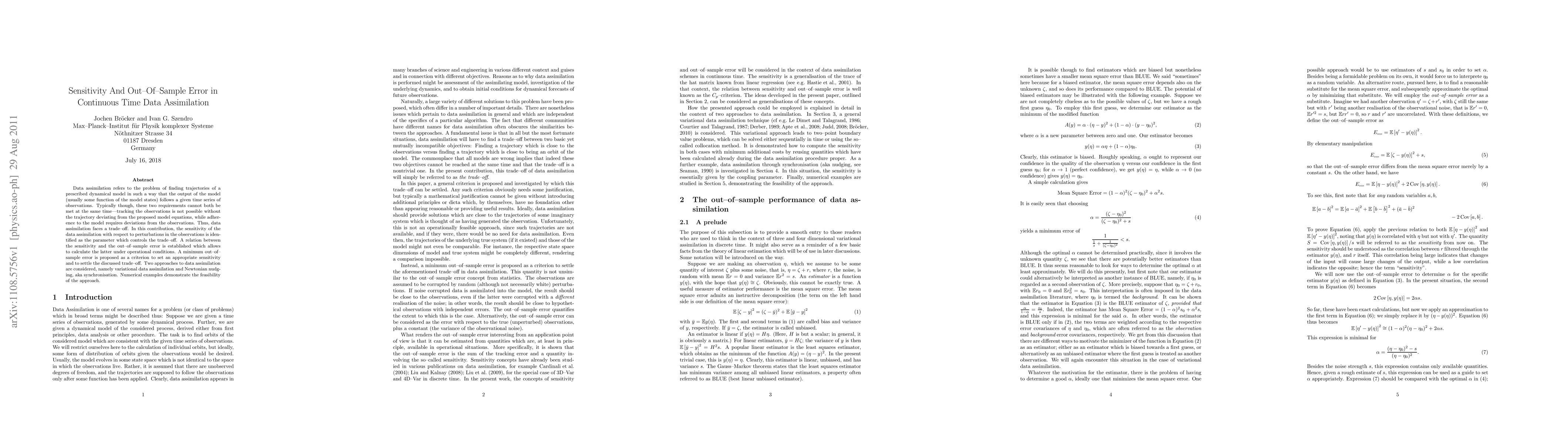 This paper explores the trade-off in data assimilation between model adherence and observation tracking, identifying sensitivity to observation perturbations as a key parameter. It establishes a relationship between sensitivity and out-of-sample error, proposing a minimum error criterion to optimize the trade-off, and demonstrates the approach with variational data assimilation and Newtonian nudging.