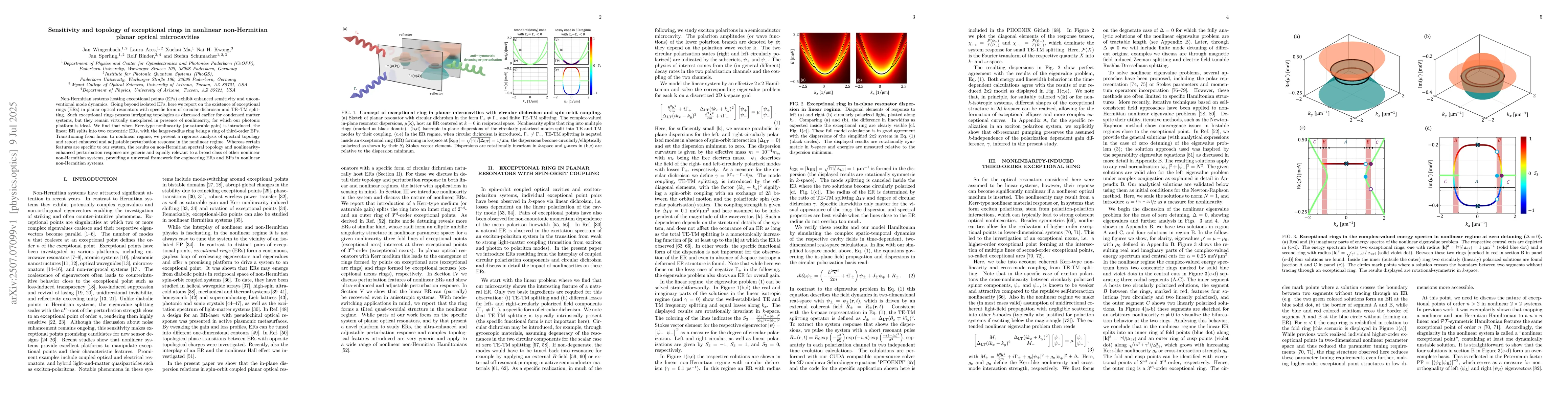 Non-Hermitian systems hosting exceptional points (EPs) exhibit enhanced sensitivity and unconventional mode dynamics. Going beyond isolated EPs, here we report on the existence of exceptional rings (ERs) in planar optical resonators with specific form of circular dichroism and TE-TM splitting. Such exceptional rings possess intriguing topologies as discussed earlier for condensed matter systems, but they remain virtually unexplored in presence of nonlinearity, for which our photonic platform is ideal. We find that when Kerr-type nonlinearity (or saturable gain) is introduced, the linear ER splits into two concentric ERs, with the larger-radius ring being a ring of third-order EPs. Transitioning from linear to nonlinear regime, we present a rigorous analysis of spectral topology and report enhanced and adjustable perturbation response in the nonlinear regime. Whereas certain features are specific to our system, the results on non-Hermitian spectral topology and nonlinearity-enhanced perturbation response are generic and equally relevant to a broad class of other nonlinear non-Hermitian systems, providing a universal framework for engineering ERs and EPs in nonlinear non-Hermitian systems.