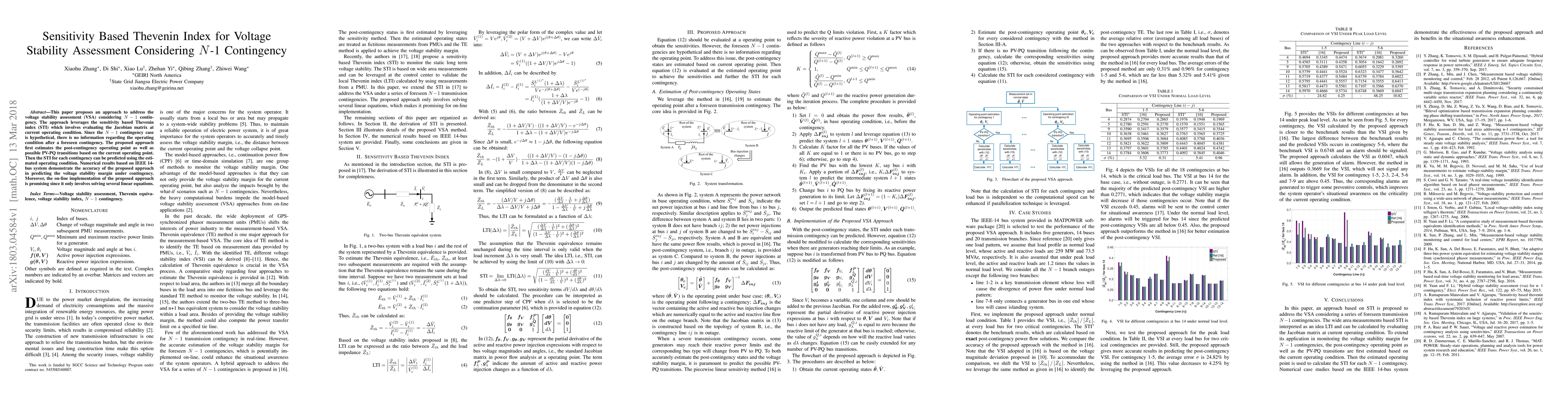 This paper introduces a sensitivity-based Thevenin index for voltage stability assessment under N-1 contingency, estimating post-contingency conditions and PV-PQ transitions. Numerical results on the IEEE 14-bus system show accurate voltage stability margin predictions, with an efficient on-line implementation via linear equations.