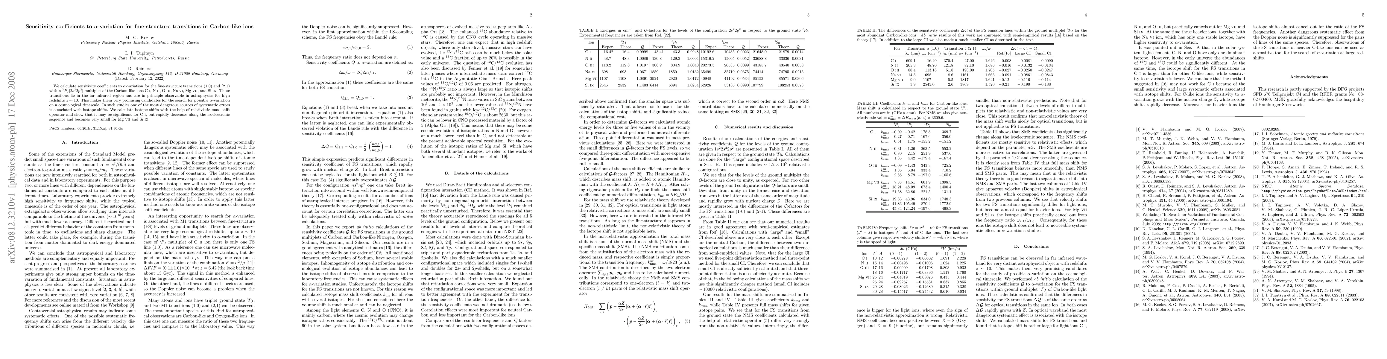 This research calculates sensitivity coefficients for fine-structure transitions in Carbon-like ions (C I, N II, O III, Na VI, Mg VII, Si IX) to $alpha$-variation, crucial for observing potential cosmological $alpha$-variation. Isotope shifts, a significant source of error, are evaluated using a relativistic mass shift operator, found to be substantial for C I but diminishing along the isoelectronic sequence.