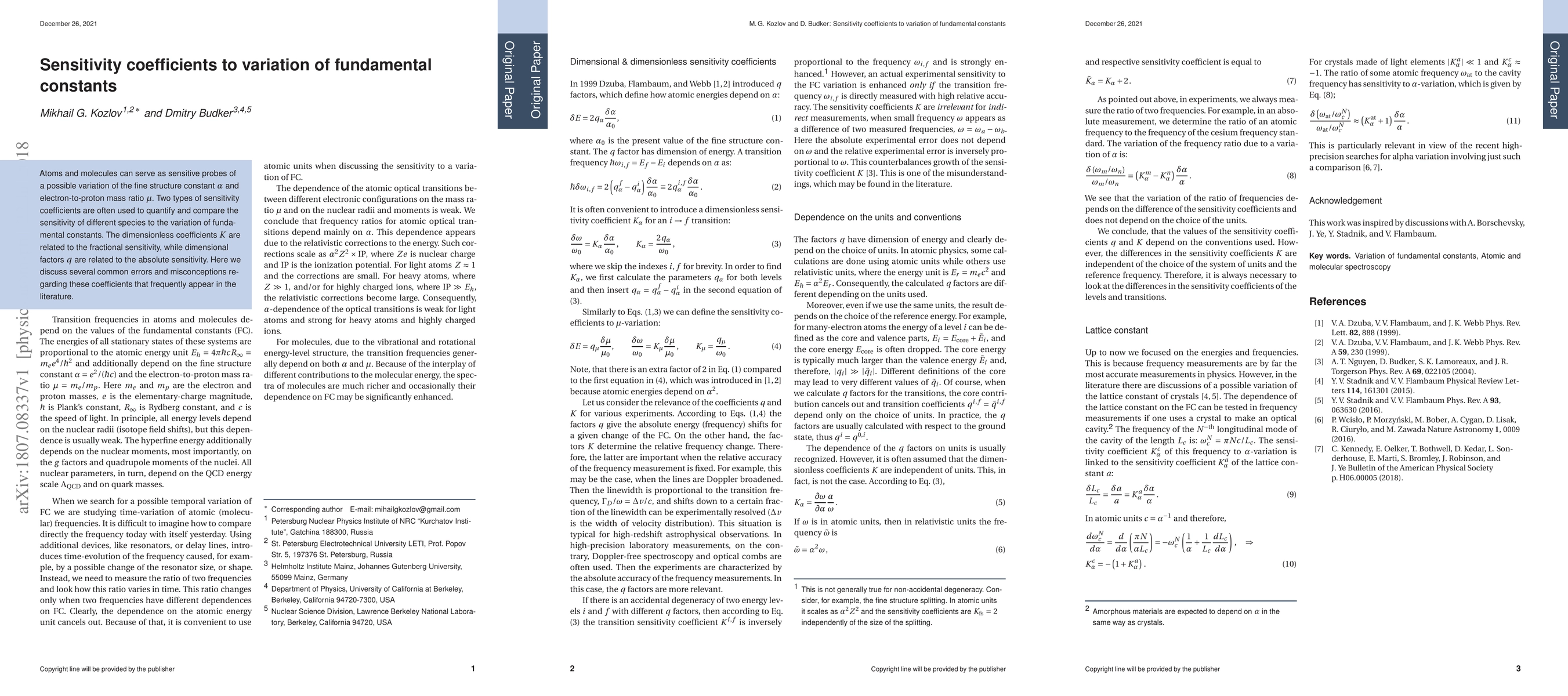 This paper discusses the sensitivity coefficients used to measure the variation of fundamental constants like the fine structure constant $\alpha$ and the electron-to-proton mass ratio $\mu$. It highlights common errors and misconceptions surrounding these coefficients, which are crucial for interpreting atomic and molecular probe measurements.
