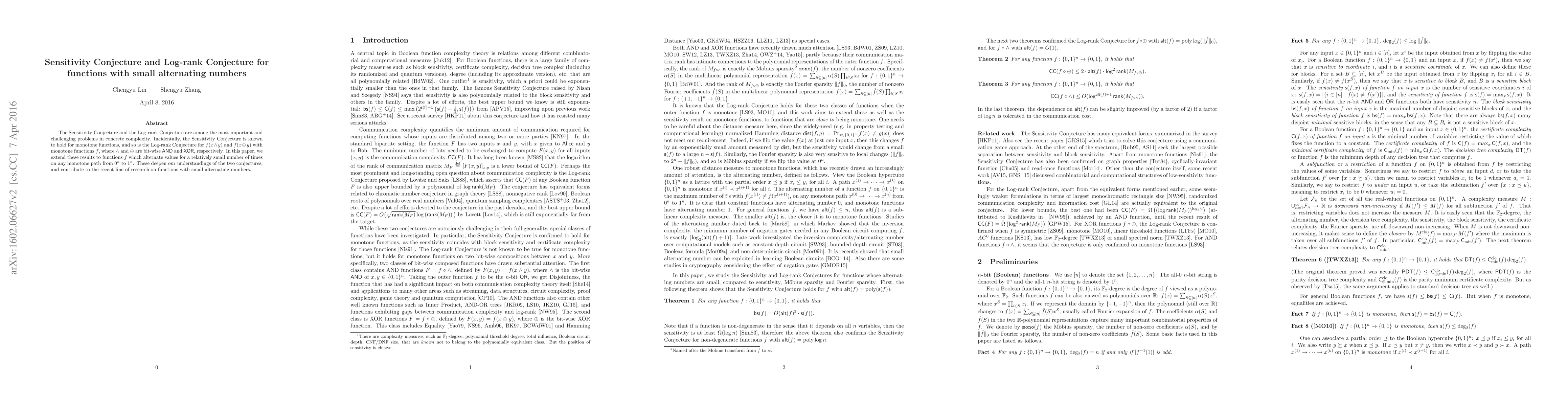 This paper extends the Sensitivity Conjecture and the Log-rank Conjecture to functions that alternate values only a small number of times on any monotone path. This advancement deepens our understanding of these important complexity conjectures and contributes to ongoing research on functions with limited alternating behavior.