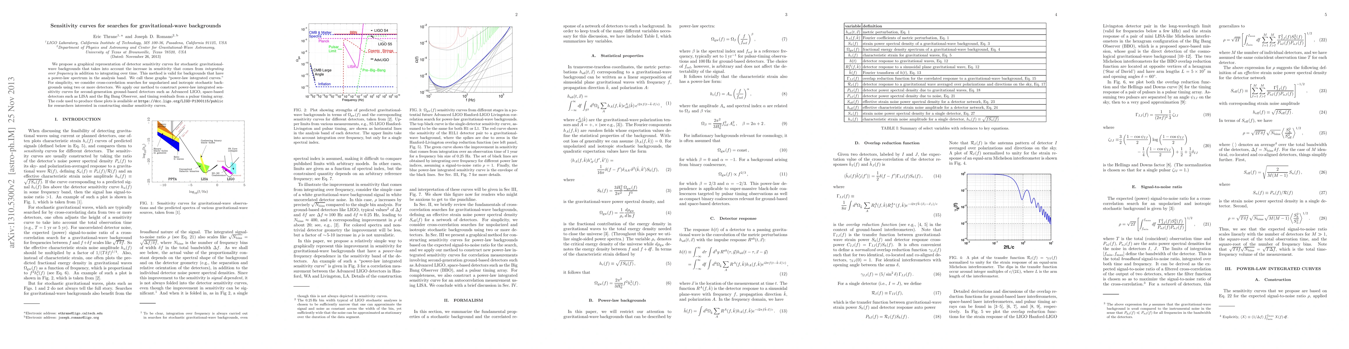 This paper introduces "power-law integrated curves" to graphically represent the sensitivity of detectors for stochastic gravitational-wave backgrounds, considering both frequency and time integration. The method is applied to second-generation ground-based, space-based detectors, and pulsar timing arrays, with the code for generating these curves made publicly available.