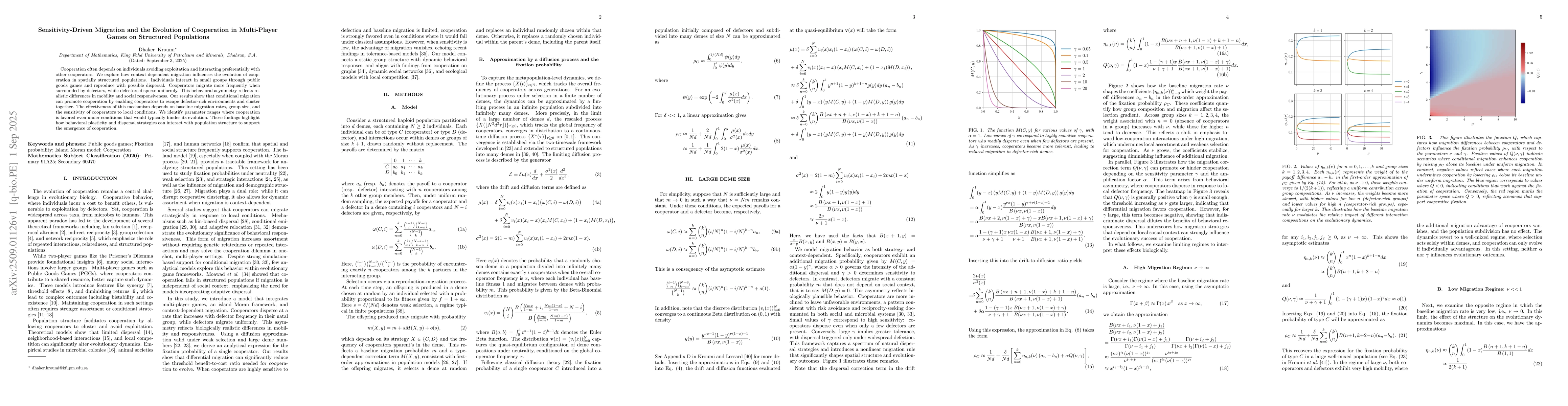 Cooperation often depends on individuals avoiding exploitation and interacting preferentially with other cooperators. We explore how context-dependent migration influences the evolution of cooperation in spatially structured populations. Individuals interact in small groups through public goods games and reproduce with possible dispersal. Cooperators migrate more frequently when surrounded by defectors, while defectors disperse uniformly. This behavioral asymmetry reflects realistic differences in mobility and social responsiveness. Our results show that conditional migration can promote cooperation by enabling cooperators to escape defector-rich environments and cluster together. The effectiveness of this mechanism depends on baseline migration rates, group size, and the sensitivity of cooperators to local conditions. We identify parameter ranges where cooperation is favored even under conditions that would typically hinder its evolution. These findings highlight how behavioral plasticity and dispersal strategies can interact with population structure to support the emergence of cooperation.