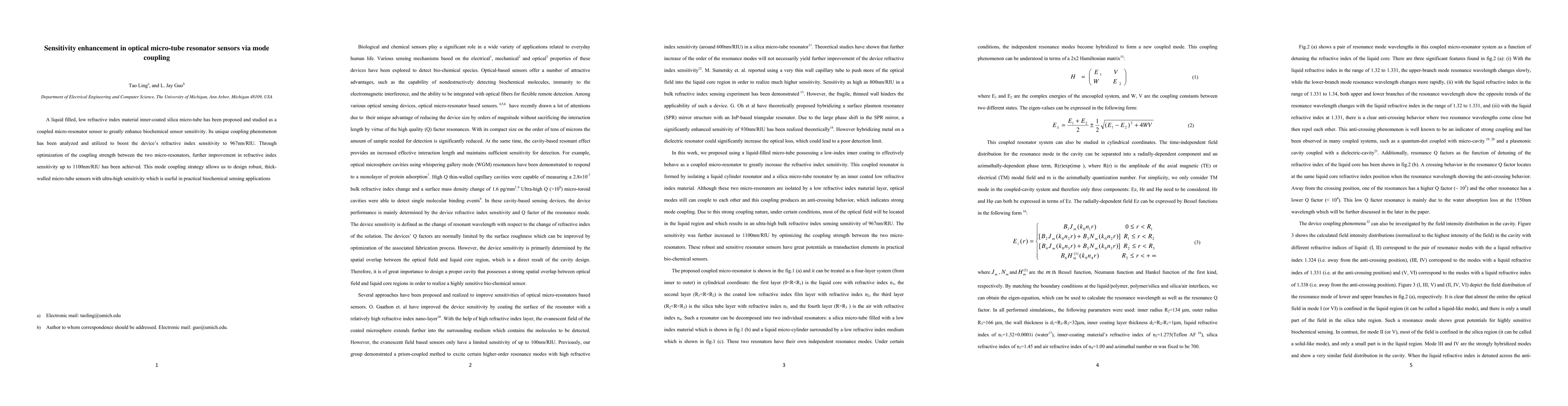 The research proposes a liquid-filled, inner-coated silica micro-tube sensor that enhances biochemical sensitivity via mode coupling, achieving up to 1100nm/RIU sensitivity. This strategy enables the design of robust, ultra-sensitive thick-walled micro-tube sensors for practical biochemical applications.