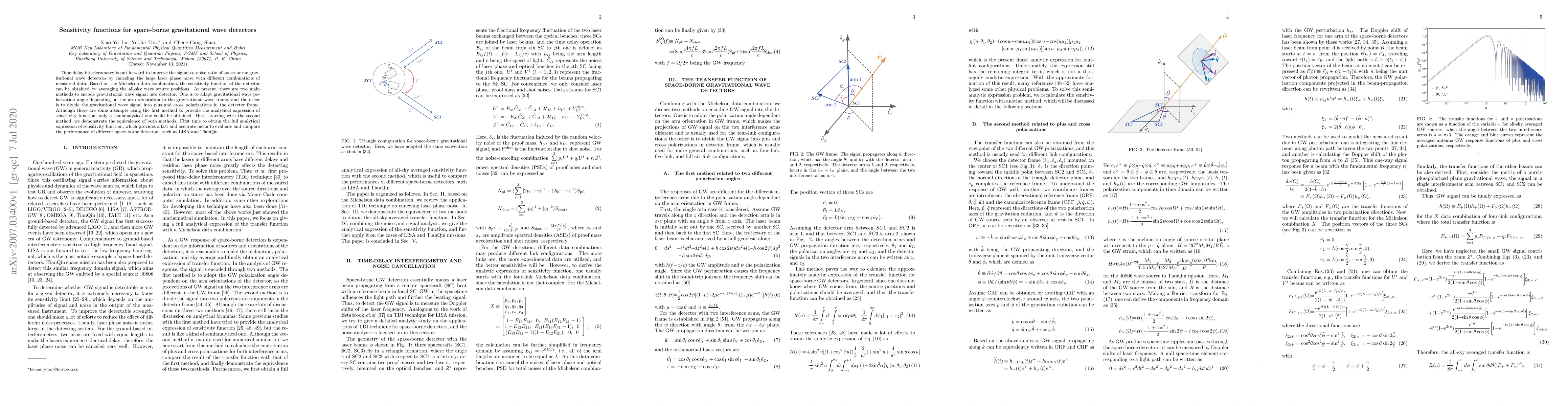 This paper develops a full analytical expression for the sensitivity function of space-borne gravitational wave detectors using time-delay interferometry, demonstrating the equivalence of two encoding methods. This provides a reliable means to evaluate and compare the performance of detectors like LISA and TianQin.