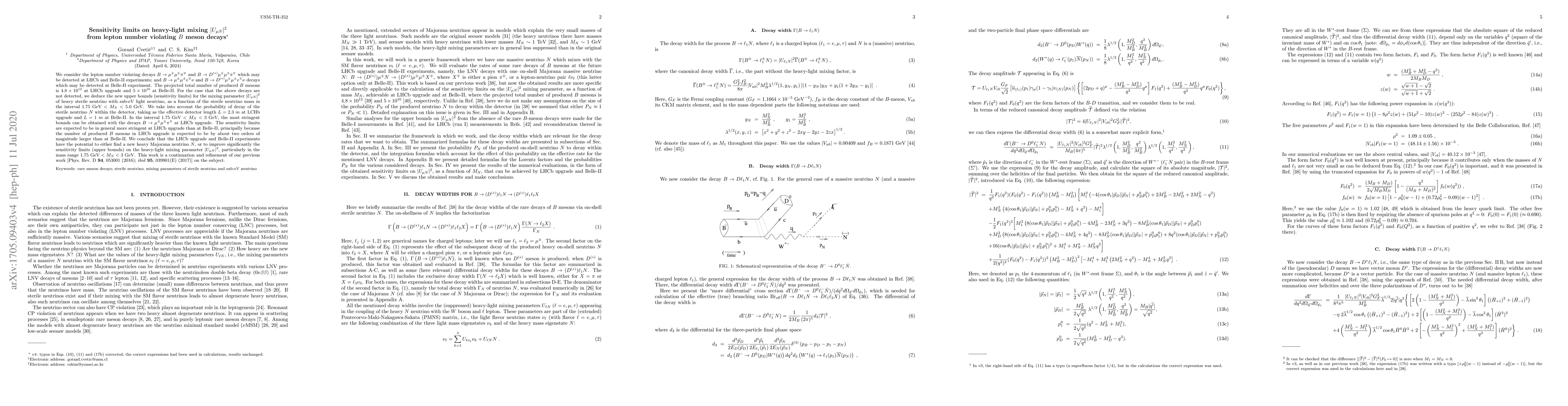 We consider the lepton number violating decays $B \to \mu^{\pm} \mu^{\pm} \pi^{\mp}$ and $B \to D^{(*)} \mu^{\pm} \mu^{\pm} \pi^{\mp}$ which may be detected at LHCb and Belle-II experiments; and $B \to \mu^{\pm} \mu^{\pm} e^{\mp} \nu$ and $B \to D^{(*)} \mu^{\pm} \mu^{\pm} e^{\mp} \nu$ decays which may be detected at Belle-II experiment. The projected total number of produced $B$ mesons is $4.8 \times 10^{12}$ at LHCb upgrade and $5 \times 10^{10}$ at Belle-II. For the case that the above decays are not detected, we deduce the new upper bounds (sensitivity limits) for the mixing parameter $|U_{\mu N}|^2$ of heavy sterile neutrino with sub-eV light neutrino, as a function of the sterile neutrino mass in the interval $1.75 \ {\rm GeV} < M_N < 5.0 \ {\rm GeV}$. We take into account the probability of decay of the sterile neutrino $N$ within the detector, taking as the effective detector length $L=2.3 \ m$ at LCHb upgrade and $L=1 \ m$ at Belle-II. In the interval $1.75 \ {\rm GeV} < M_N < 3 \ {\rm GeV}$, the most stringent bounds can be obtained with the decays $B \to \mu^{\pm} \mu^{\pm} \pi^{\mp}$ at LHCb upgrade. The sensitivity limits are expected to be in general more stringent at LHCb upgrade than at Belle-II, principally because the number of produced $B$ mesons in LHCb upgrade is expected to be by about two orders of magnitude larger than at Belle-II. We conclude that the LHCb upgrade and Belle-II experiments have the potential to either find a new heavy Majorana neutrino $N$, or to improve significantly the sensitivity limits (upper bounds) on the heavy-light mixing parameter $|U_{\mu N}|^2$, particularly in the mass range $1.75 \ {\rm GeV} < M_N < 3 \ {\rm GeV}$. This work is a continuation and refinement of our previous work [1] on the subject.