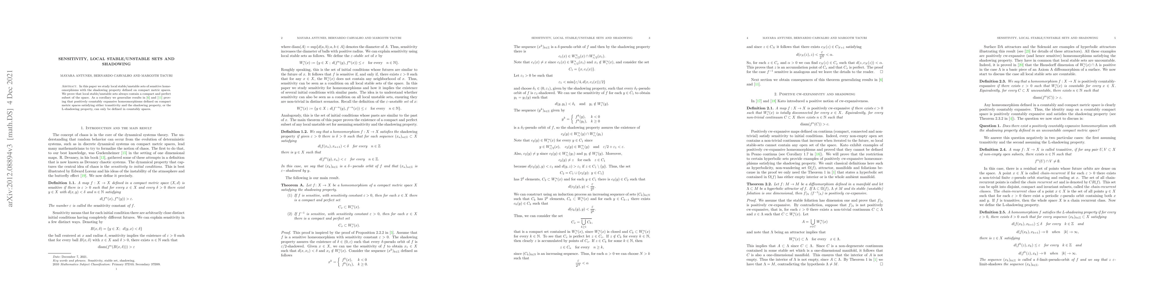 This paper investigates local stable/unstable sets in sensitive homeomorphisms with the shadowing property on compact metric spaces, proving they contain compact and perfect subsets. It also generalizes results showing that positively countably expansive homeomorphisms satisfying transitivity or the L-shadowing property can only exist in countably compact spaces.