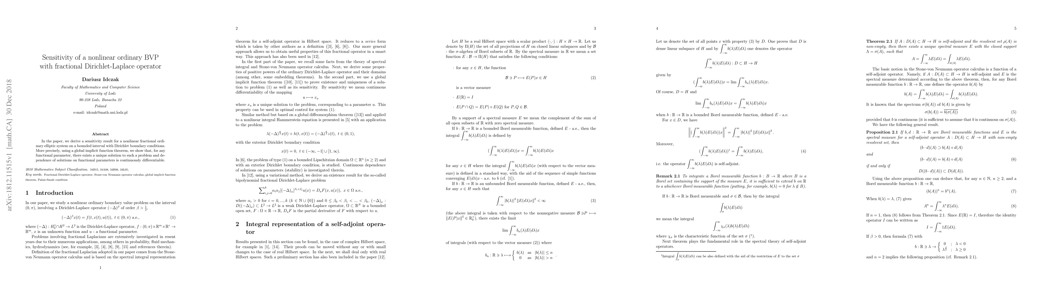 In the paper, we derive a sensitivity result for a nonlinear fractional ordinary elliptic system on a bounded interval with Dirichlet boundary conditions. More precisely, using a global implicit function theorem, we show that, for any functional parameter, there exists a unique solution to such a problem and dependence of solutions on functional parameters is continuously differentiable.