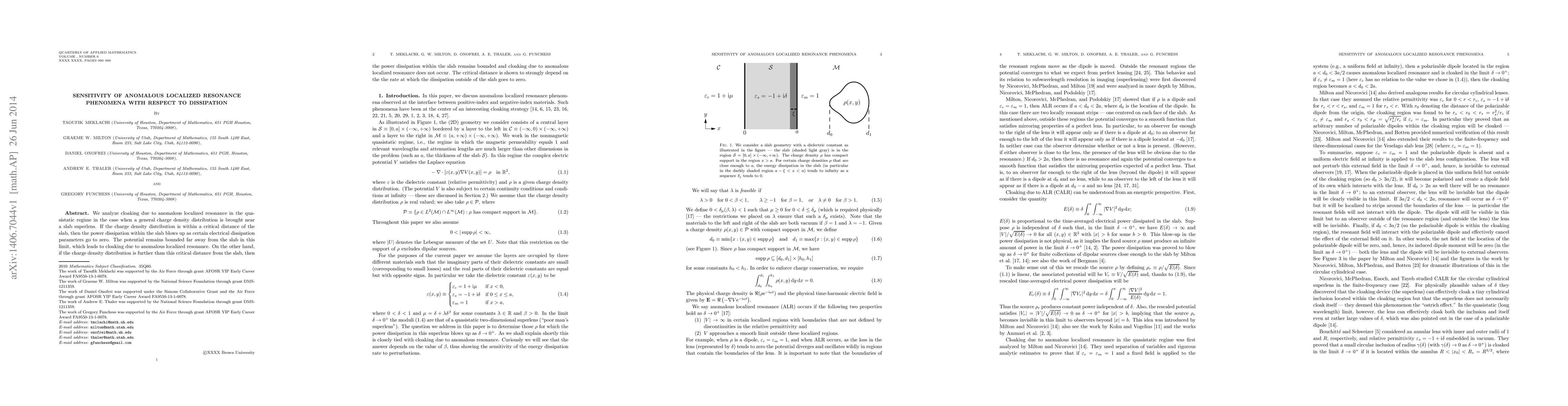 This paper investigates cloaking via anomalous localized resonance when a charge density is near a slab superlens, revealing that cloaking occurs only if the charge is within a critical distance from the slab. The power dissipation within the slab diverges as dissipation parameters approach zero, leading to cloaking effects, while remaining bounded if the charge is farther away.