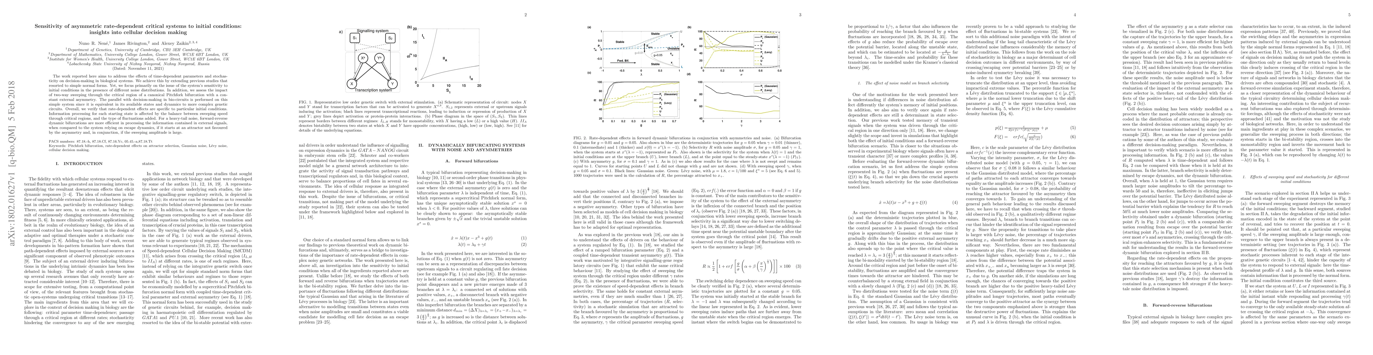 This study investigates how biological systems respond to different initial conditions and noise distributions in rate-dependent critical systems, shedding light on decision-making processes in bio-circuits.
