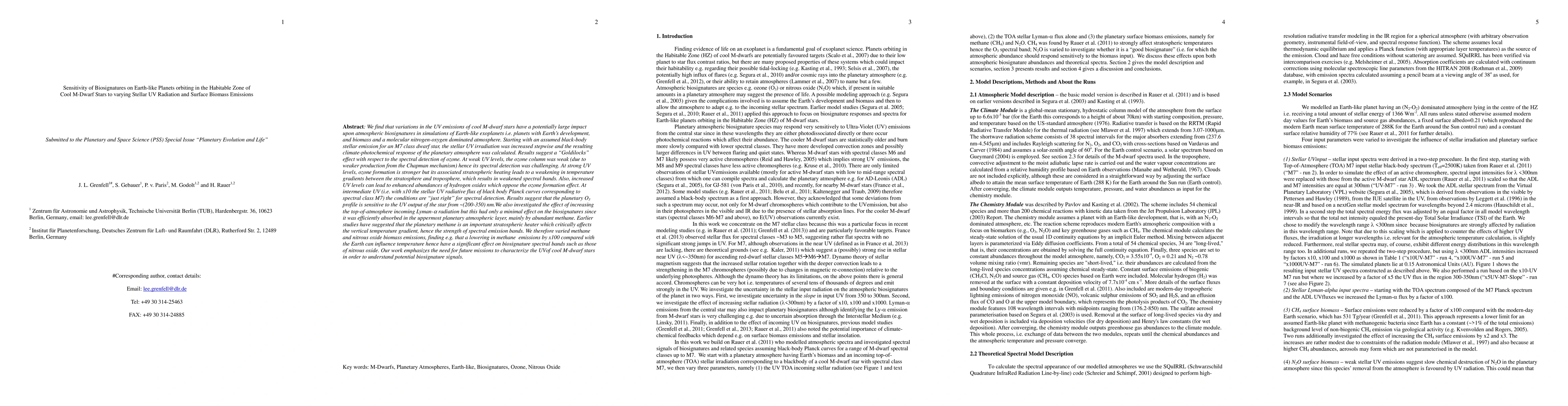 We find that variations in the UV emissions of cool M-dwarf stars have a potentially large impact upon atmospheric biosignatures in simulations of Earth-like exoplanets i.e. planets with Earths development, and biomass and a molecular nitrogen-oxygen dominated atmosphere. Starting with an assumed black-body stellar emission for an M7 class dwarf star, the stellar UV irradiation was increased stepwise and the resulting climate-photochemical response of the planetary atmosphere was calculated. Results suggest a Goldilocks effect with respect to the spectral detection of ozone. At weak UV levels, the ozone column was weak (due to weaker production from the Chapman mechanism) hence its spectral detection was challenging. At strong UV levels, ozone formation is stronger but its associated stratospheric heating leads to a weakening in temperature gradients between the stratosphere and troposphere, which results in weakened spectral bands. Also, increased UV levels can lead to enhanced abundances of hydrogen oxides which oppose the ozone formation effect. At intermediate UV (i.e. with x10 the stellar UV radiative flux of black body Planck curves corresponding to spectral class M7) the conditions are just right for spectral detection. Results suggest that the planetary O3 profile is sensitive to the UV output of the star from about(200-350) nm. We also investigated the effect of increasing the top-of-atmosphere incoming Lyman-alpha radiation but this had only a minimal effect on the biosignatures since it was efficiently absorbed in the uppermost planetary atmospheric layer, mainly by abundant methane. Earlier studies have suggested that the planetary methane is an important stratospheric heater which critically affects the vertical temperature gradient, hence the strength of spectral emission bands.