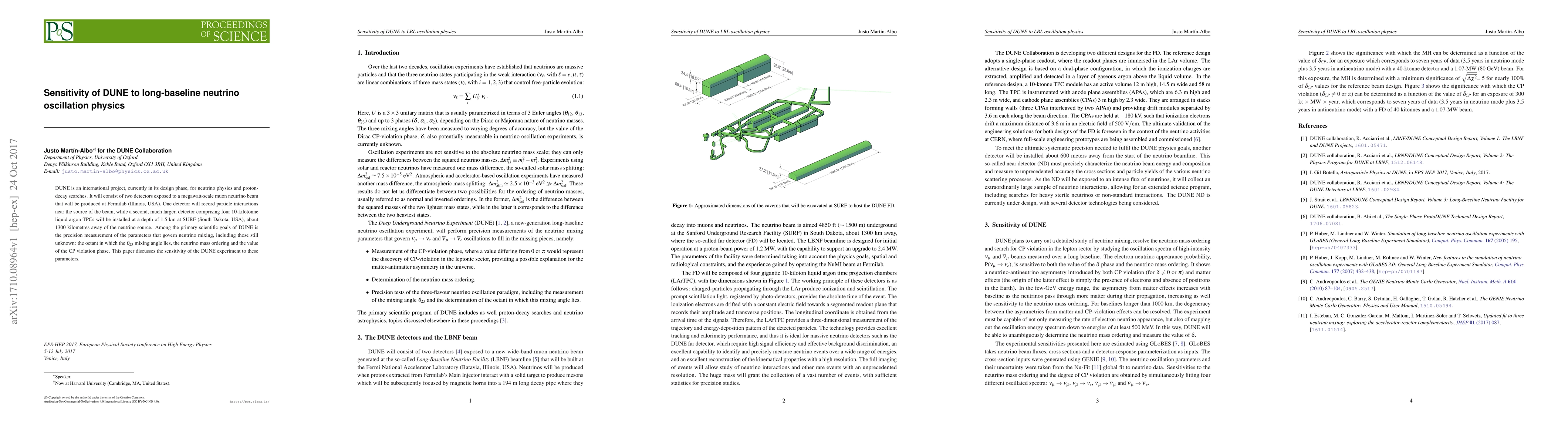 DUNE, an international project in its design phase, aims to measure neutrino mixing parameters with high precision using two detectors at different distances from a neutrino source at Fermilab. The study assesses DUNE's sensitivity to determining the octant of the $\theta_{23}$ angle, neutrino mass ordering, and the CP violation phase.
