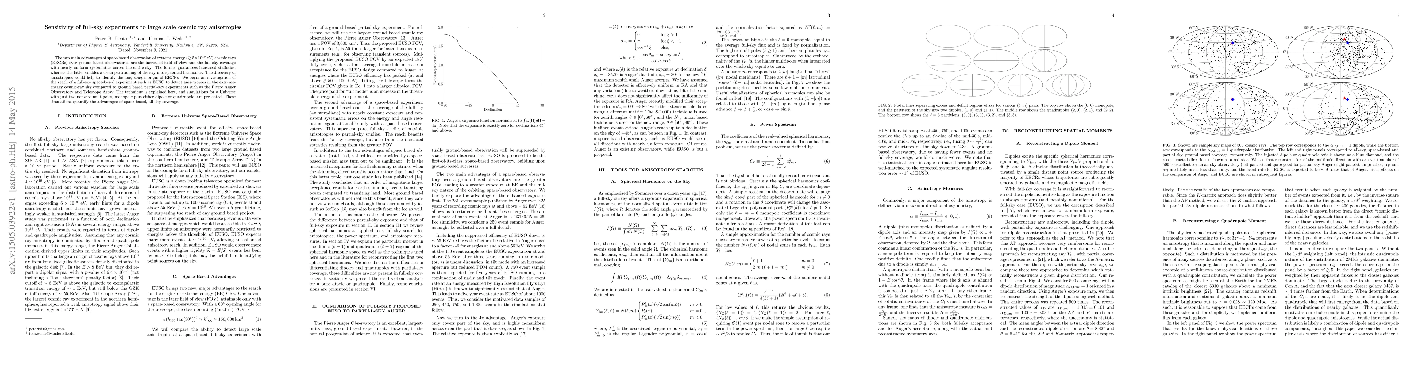 This paper investigates the sensitivity of full-sky space-based experiments like EUSO to detect large-scale cosmic ray anisotropies compared to ground-based partial-sky observatories. It highlights the advantages of increased statistics and uniform systematics in space-based observations, and presents simulations to quantify these benefits.