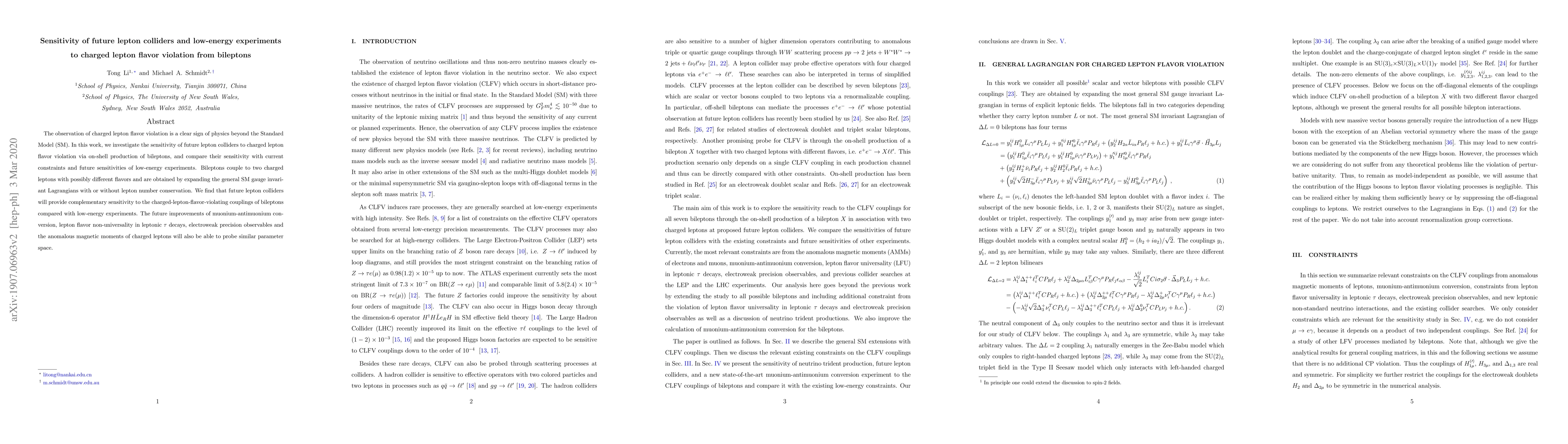 This research explores the potential of future lepton colliders to detect charged lepton flavor violation via bileptons, comparing their sensitivity to that of low-energy experiments. Future colliders are predicted to offer complementary insights into bilepton interactions compared to ongoing and upcoming low-energy investigations.