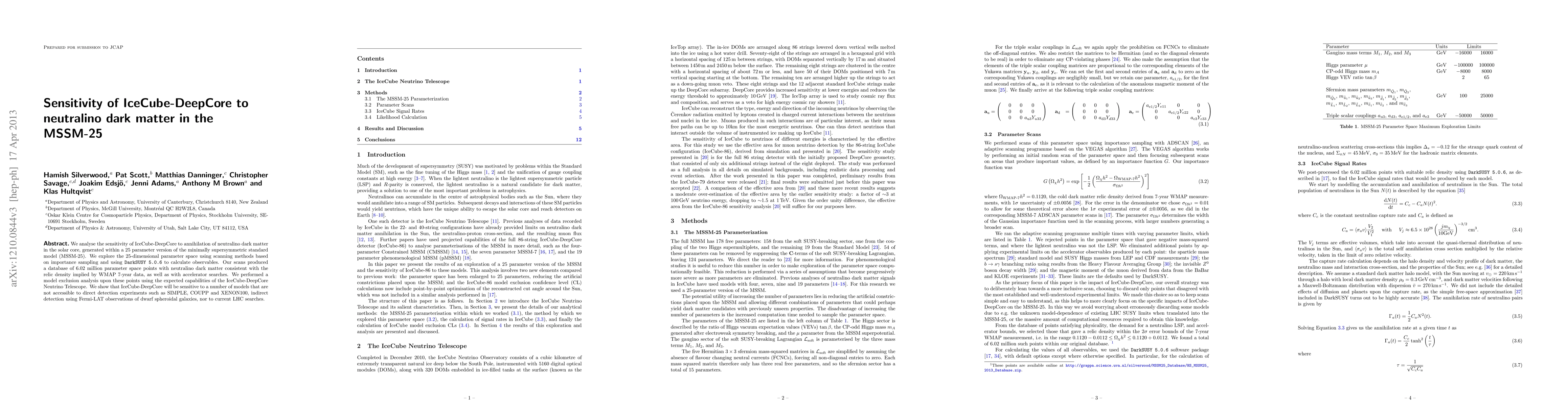 This paper assesses IceCube-DeepCore's capability to detect neutralino dark matter annihilation in the solar core within the MSSM-25 framework, finding it sensitive to models not accessible by other detection methods. The study uses scanning methods and a database of 6.02 million parameter points to perform a model exclusion analysis.